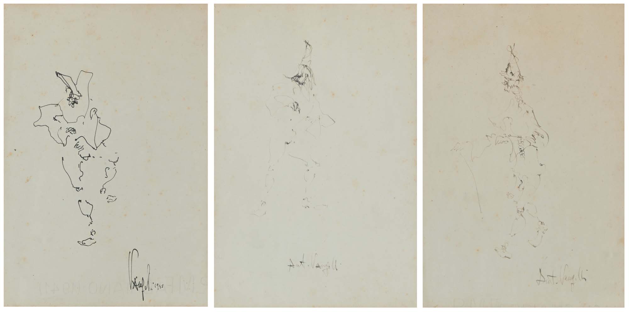 Antonio Vangelli Tre disegni su carta raffiguranti arlecchino 1945 Ogni...
