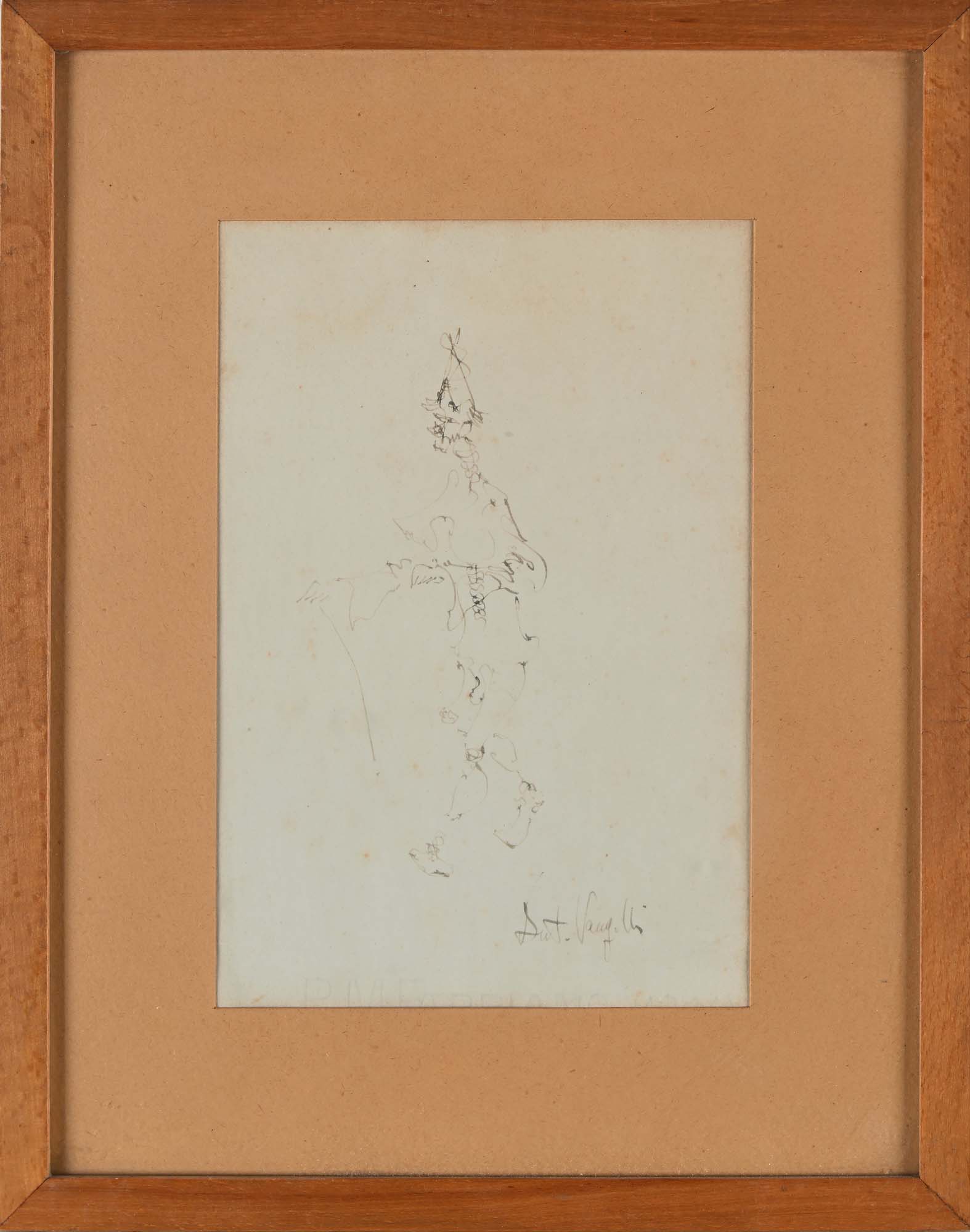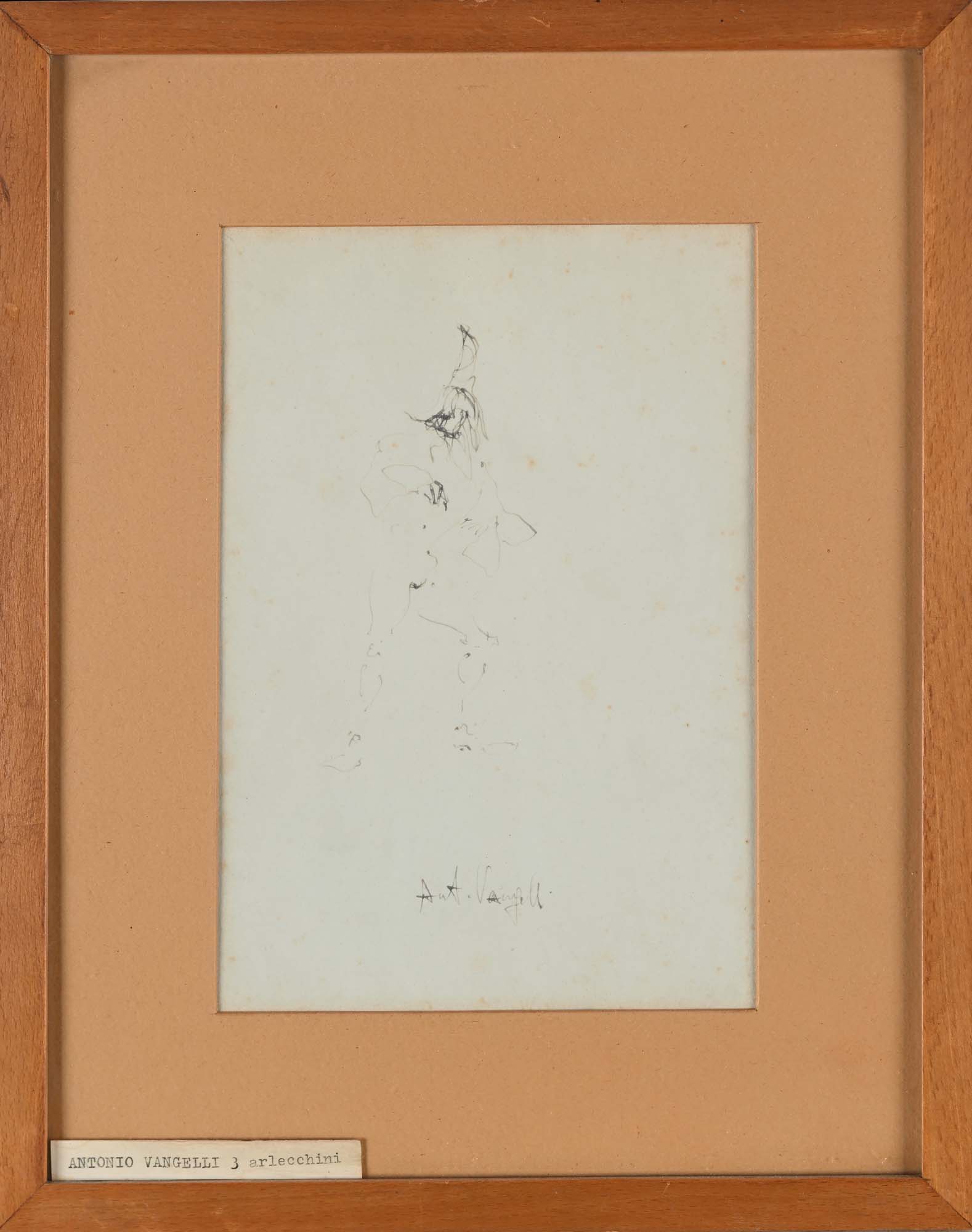 Antonio Vangelli Tre disegni su carta raffiguranti arlecchino 1945 Ogni disegno misura cm 22x15 circa, in cornice cm 34x27. Tutti e tre sono firmati "Ant. Vangelli" Coll. Felice Chilanti, Roma
