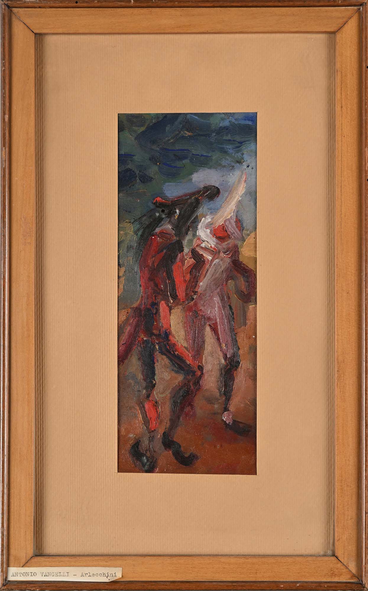 Lotto 79 | Antonio Vangelli (attribuito a) Arlecchino Olio su tela cm 27x11 - in cornice...