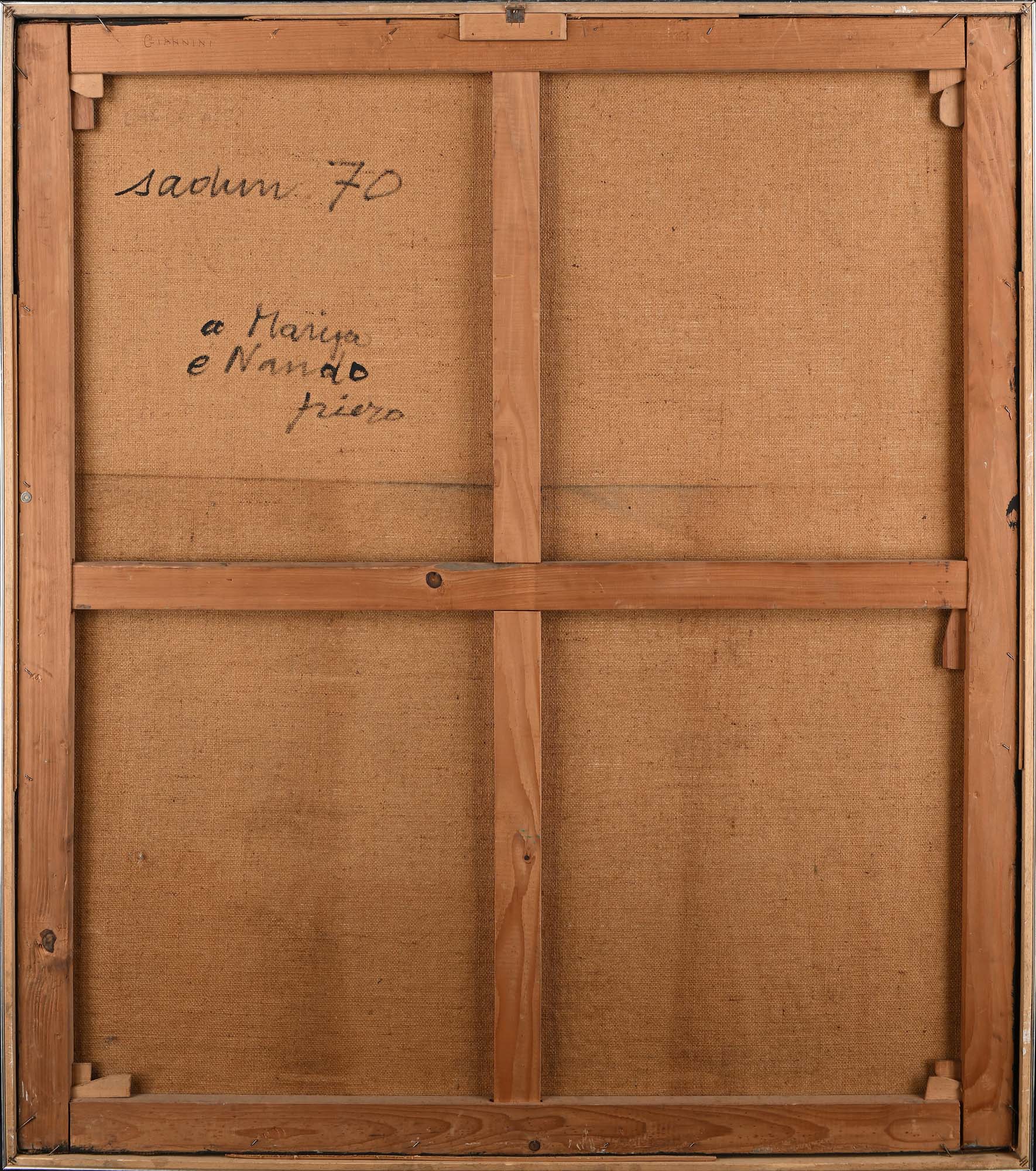 Piero Sadun Senza titolo 1970 Olio su tela cm 130x115 - in cornice cm 134x119 Al verso reca firma, data e dedica "Sadun '70, A Marisa (Volpi) e Nando, Piero". Coll. Marisa Volpi, Roma