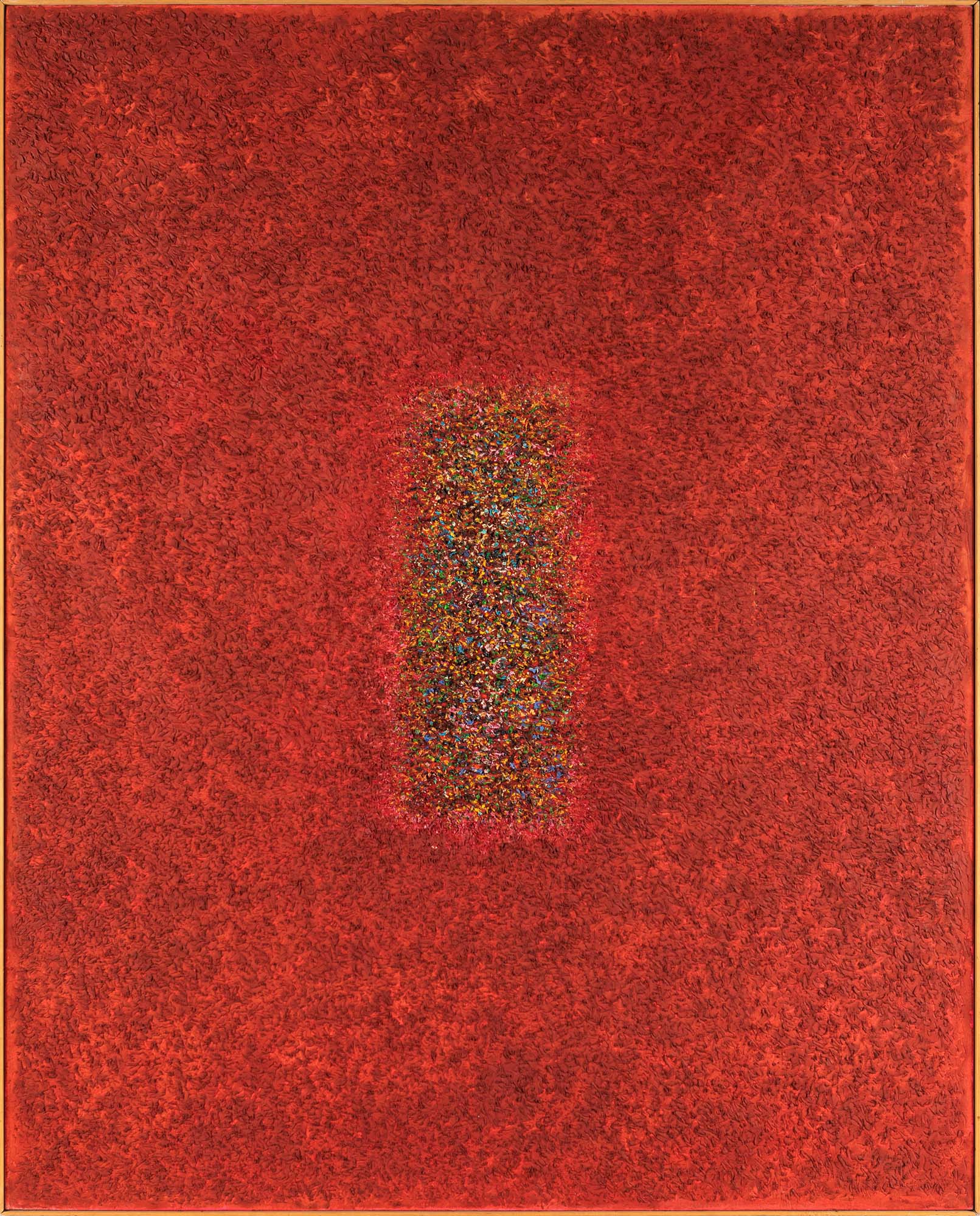 Luigi Boille Centralità Rosso Acceso 1984 Olio su tela cm 162x130 Al verso reca firma, titolo e data "Boille '84" Luigi Boille, Centralità 1980-84, itinerario critico-artistico 1953-1984 (catalogo mostra), illustrato a colori a pagina 16  Certificato di autenticità dell'Archivio Luigi Boille, Roma