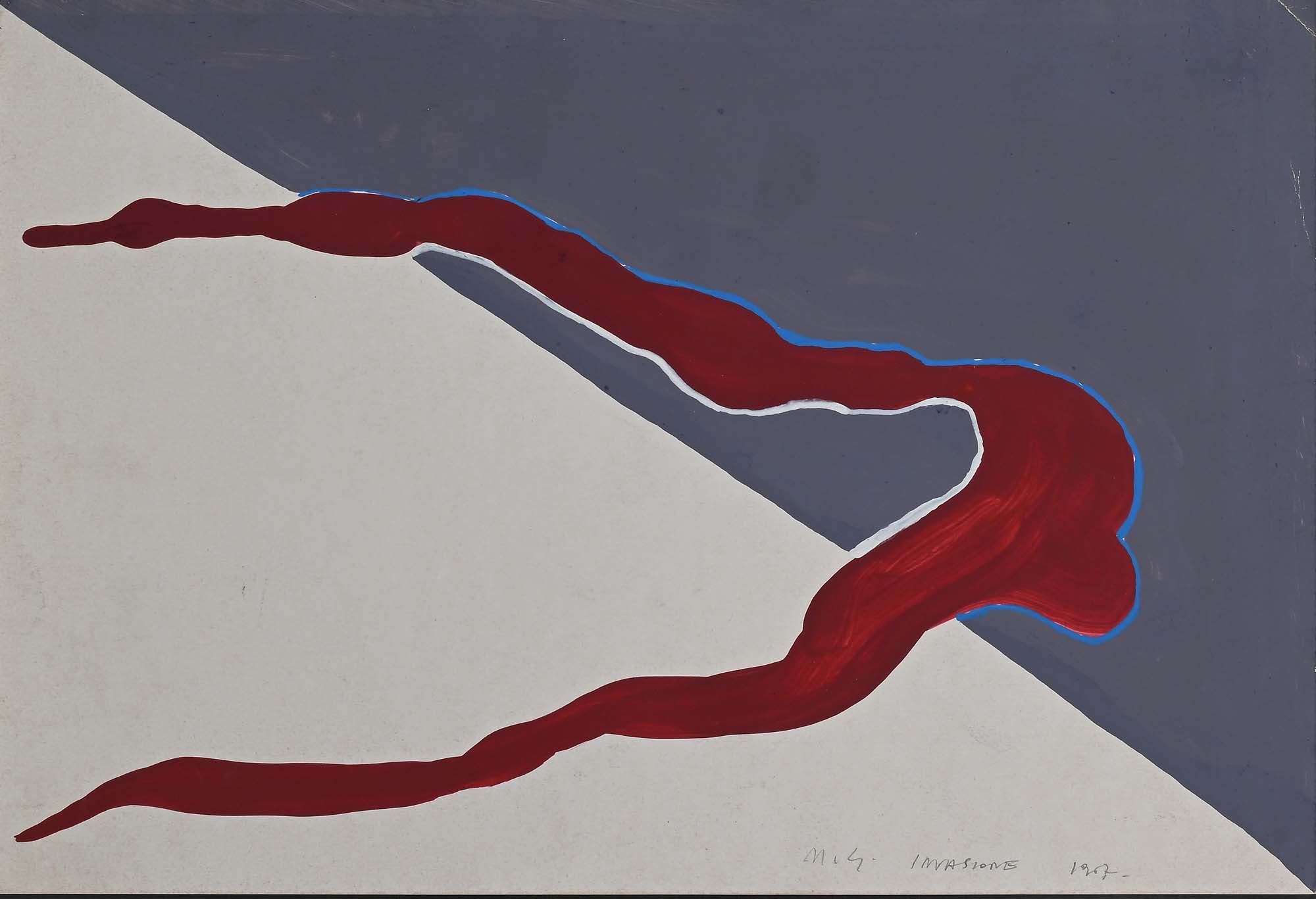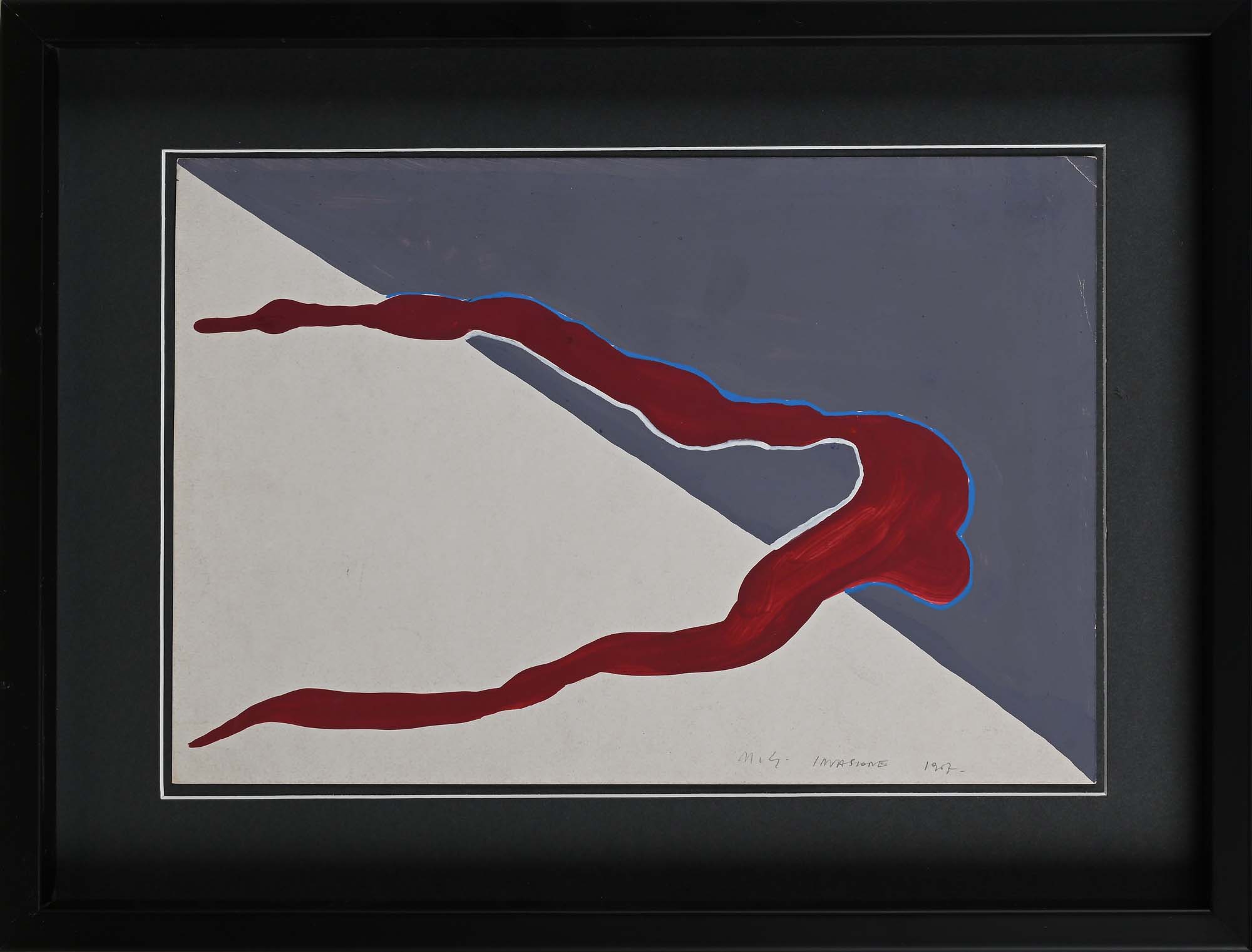 Nedda Guidi Invasione 1967 tempera su carta cm 21x31 Firma, titolo e data in...