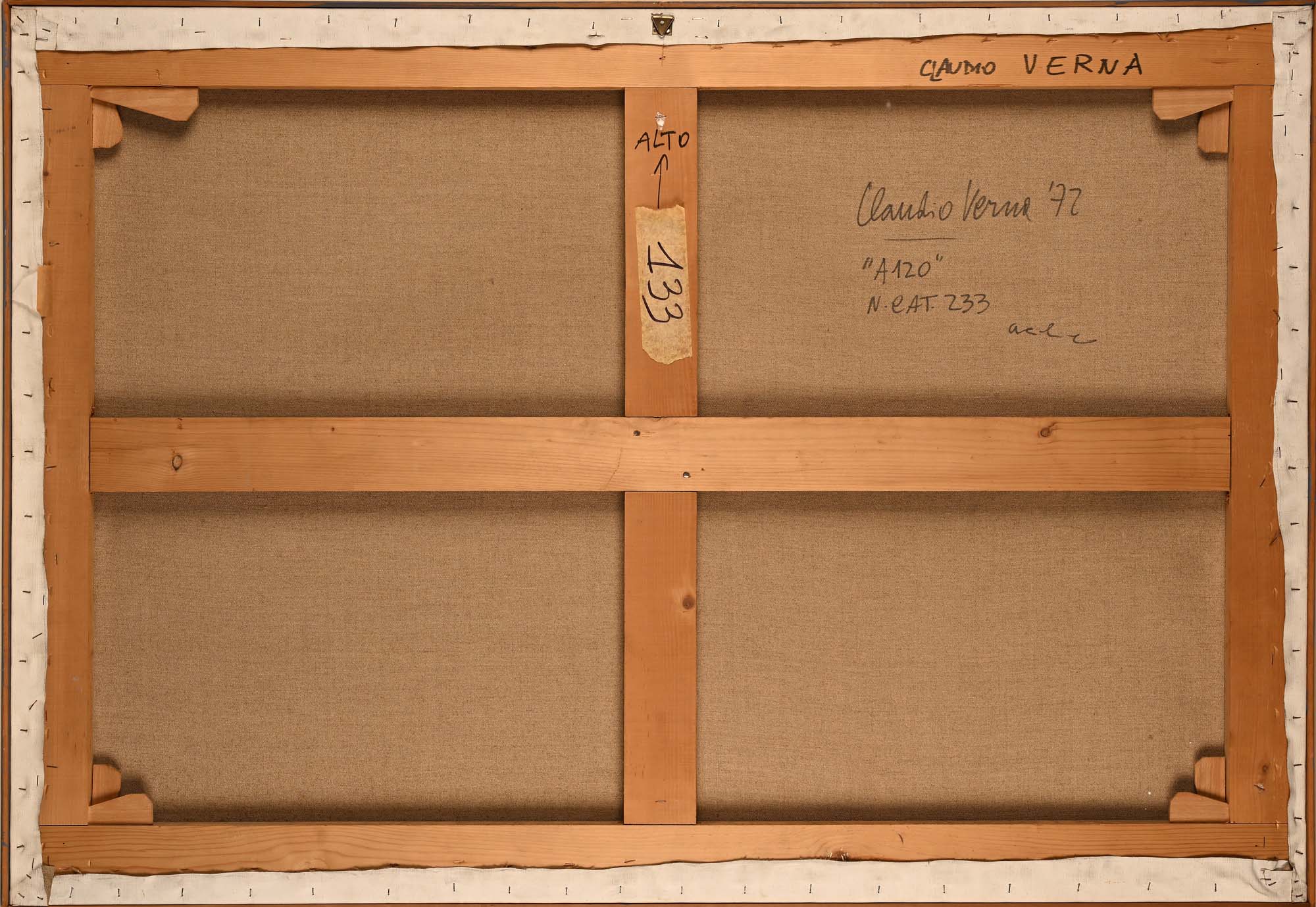 Claudio Verna A120 1972 Acrilico su tela cm 90x130 Al verso reca firma, titolo e data "Claudio Verna '72, A120".