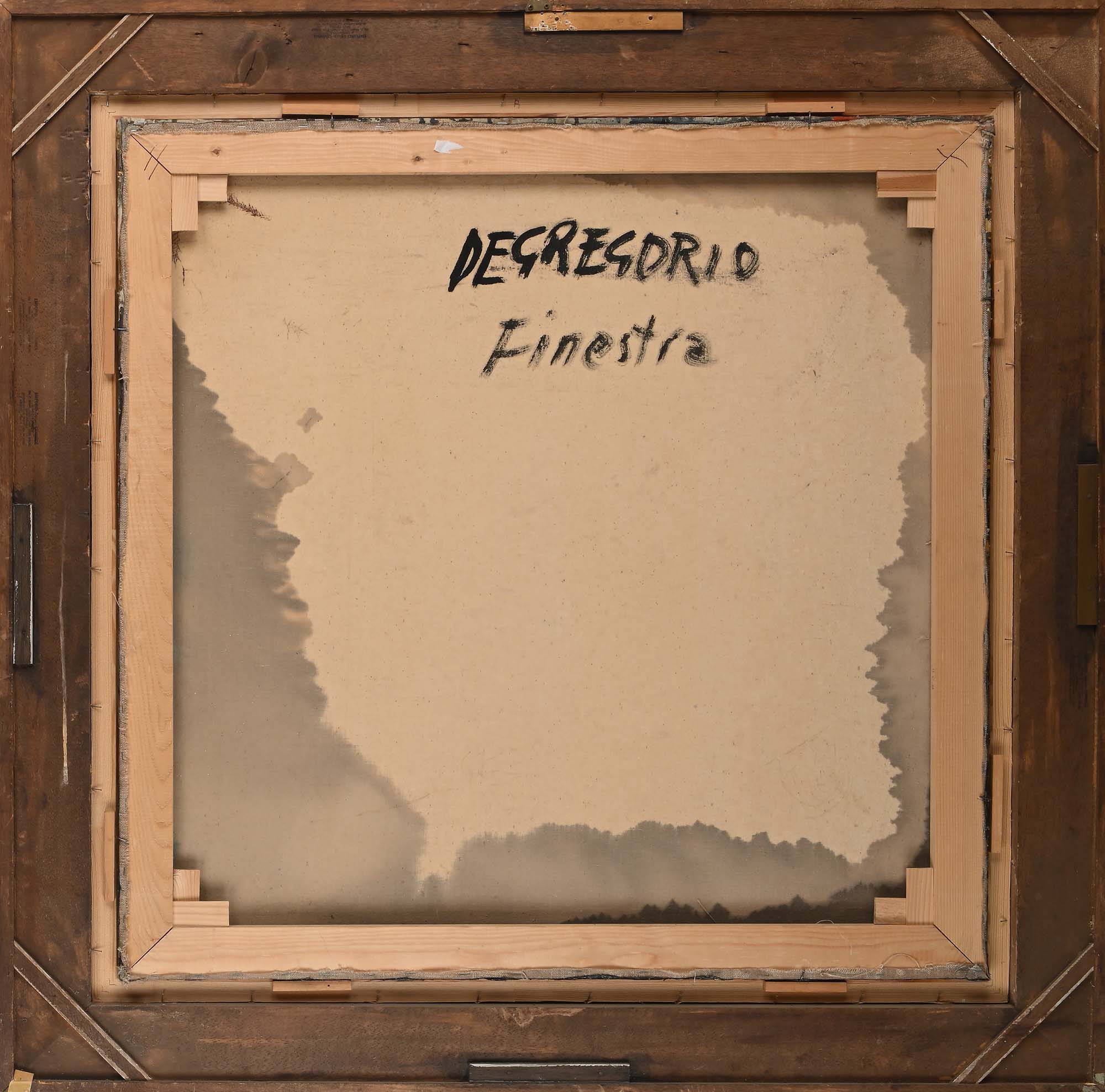 Giuseppe De Gregorio Finestra Fine anni '70 Olio su tela cm 88,5x88,5 - in cornice cm 113x113 Firma in basso a sinistra "De Gregorio". Al verso reca titolo e firma Certificato di autenticità rilasciato dall'Archivio Opere Giuseppe De Gregorio, Nonantola (MO)