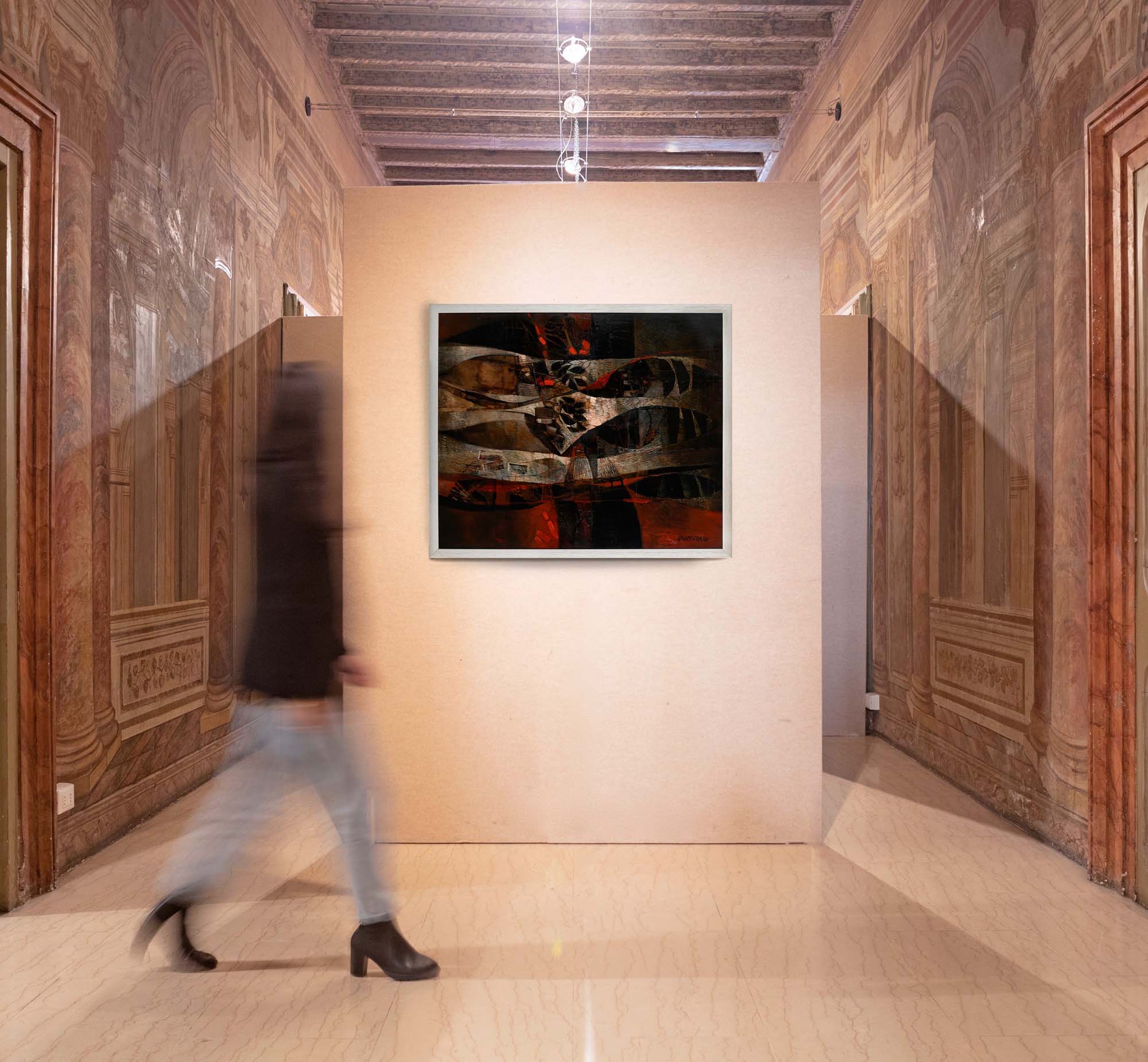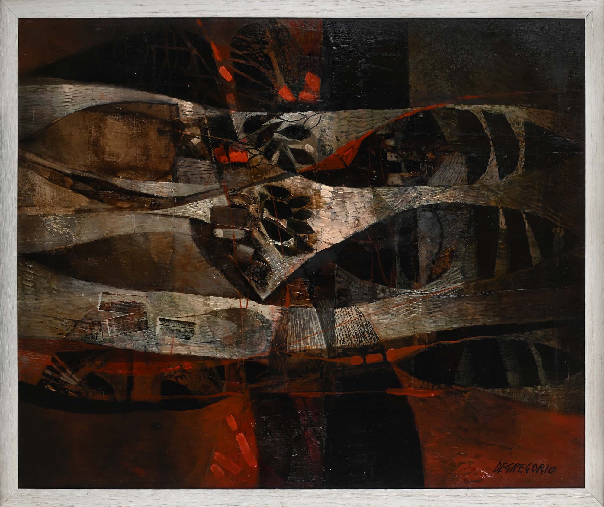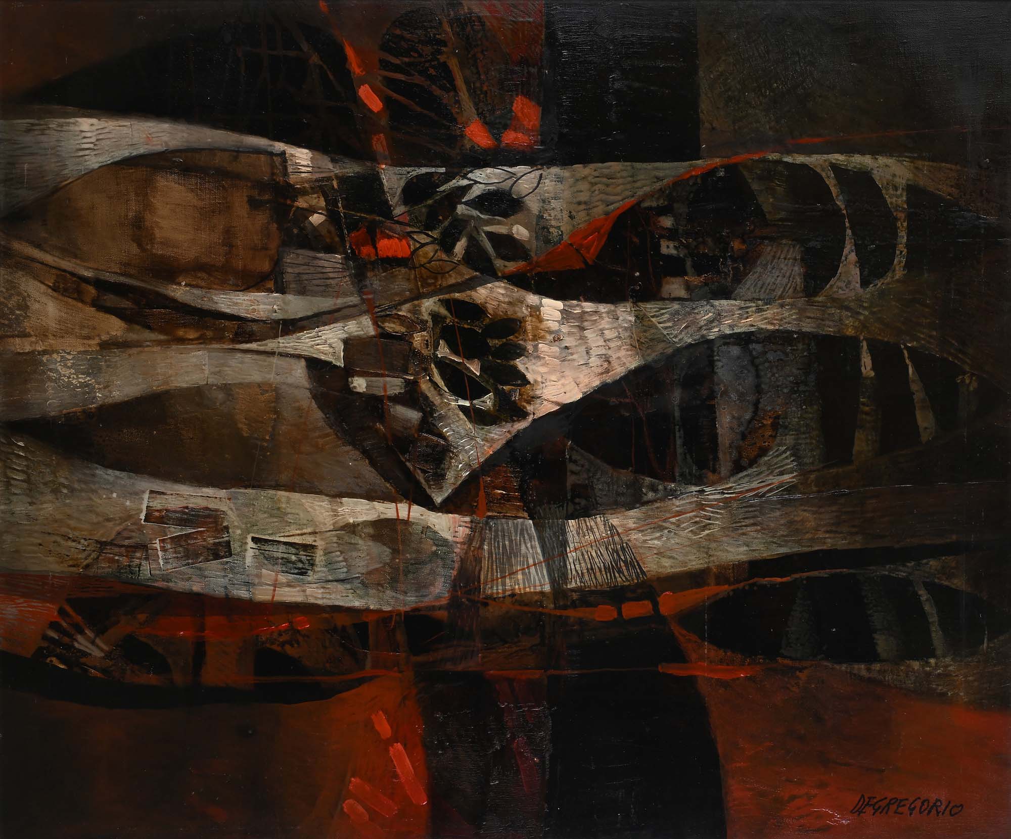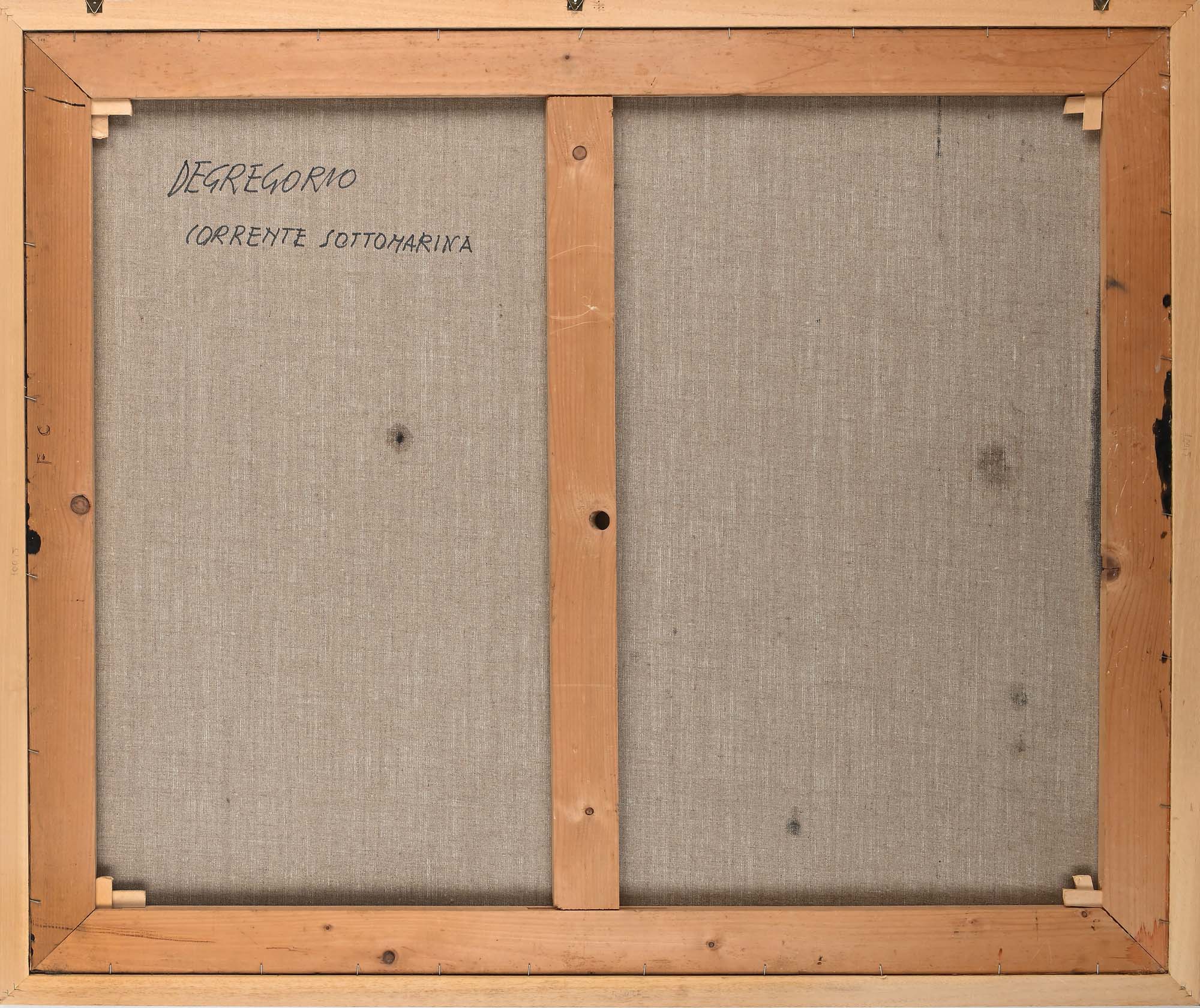 Giuseppe De Gregorio Corrente sottomarina Primi anni '80 Olio su tela cm 100x120 - in cornice cm 107x127 Firma in basso a destra "De Gregorio". Al verso reca titolo e firma  Certificato di autenticità rilasciato dall'Archivio Opere Giuseppe De Gregorio, Nonantola (MO)