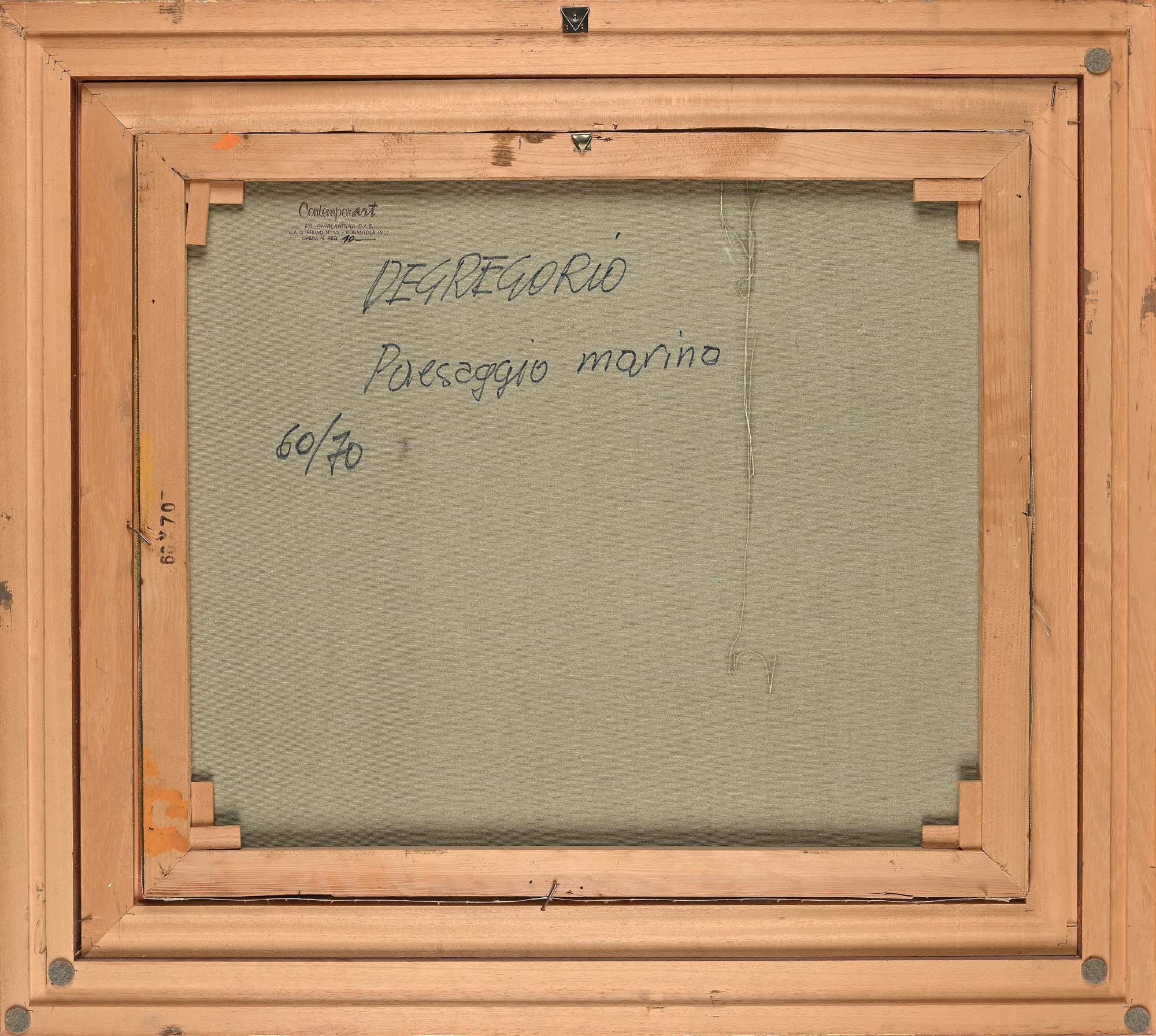 Giuseppe De Gregorio Paesaggio Marino Metà anni '80 Olio su tela cm 60x70 - in cornice cm 81x92 Firma in basso a destra "De Gregorio". Al verso reca firma e titolo. Timbro ContemporArt Ghirlandina Modena Certificato di autenticità rilasciato dall'Archivio Opere Giuseppe De Gregorio, Nonantola (MO)