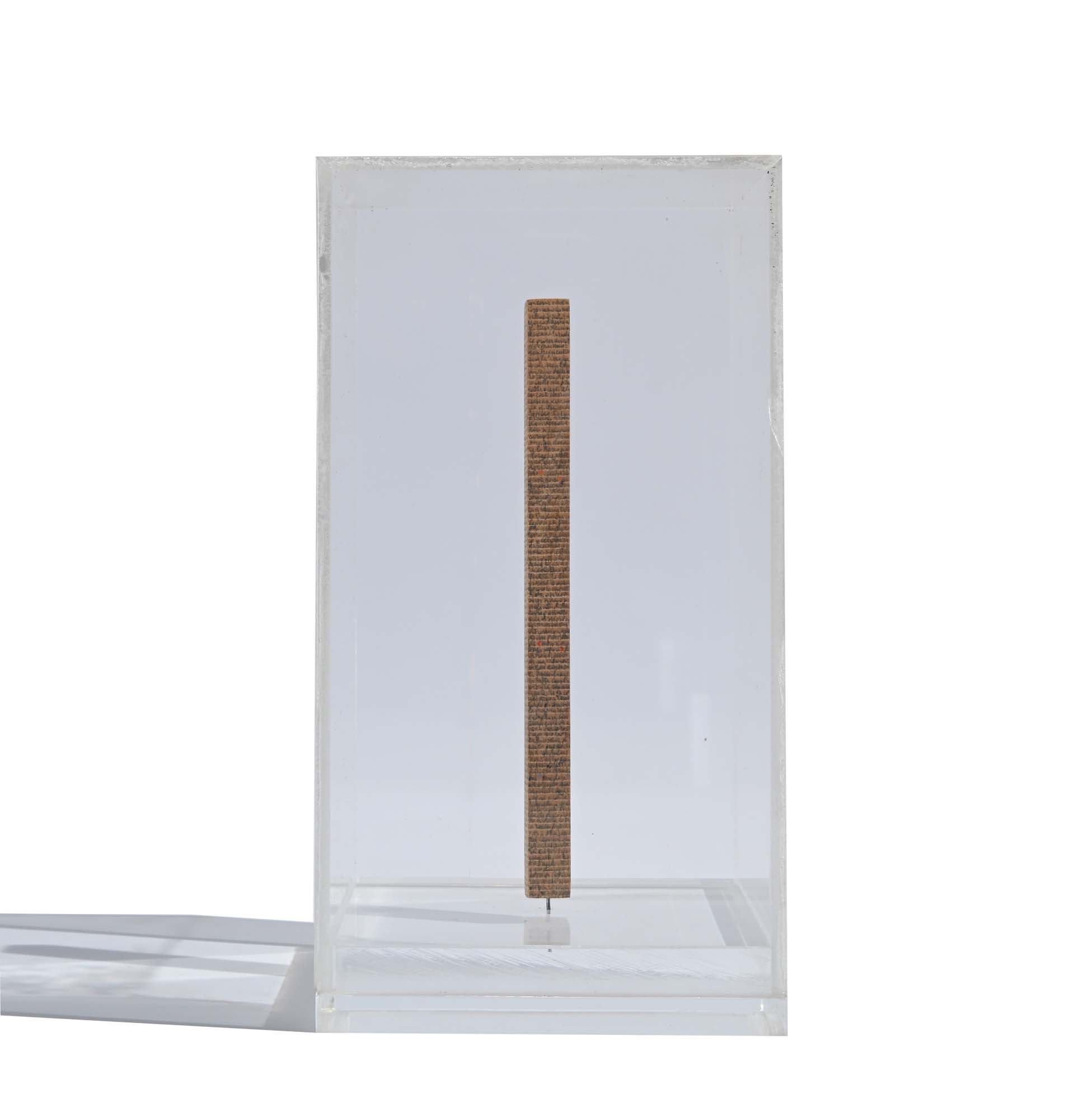Guglielmo Achille Cavellini Senza titolo Inchiostro su legno cm h 15x1x1 - entro teca in plexiglass cm 20x10x10