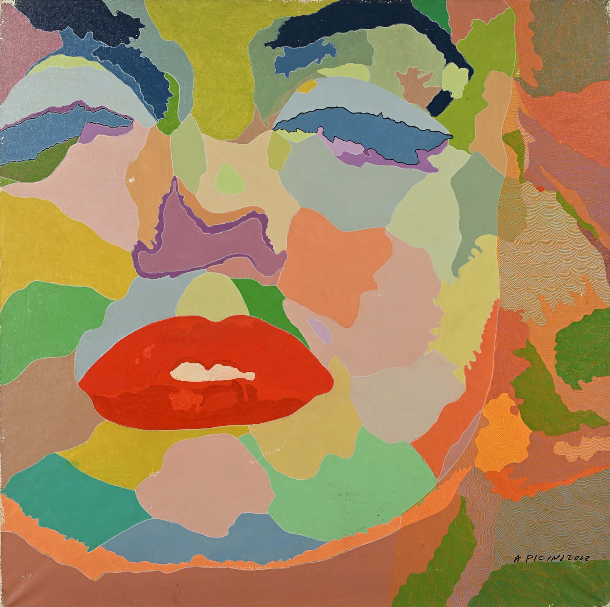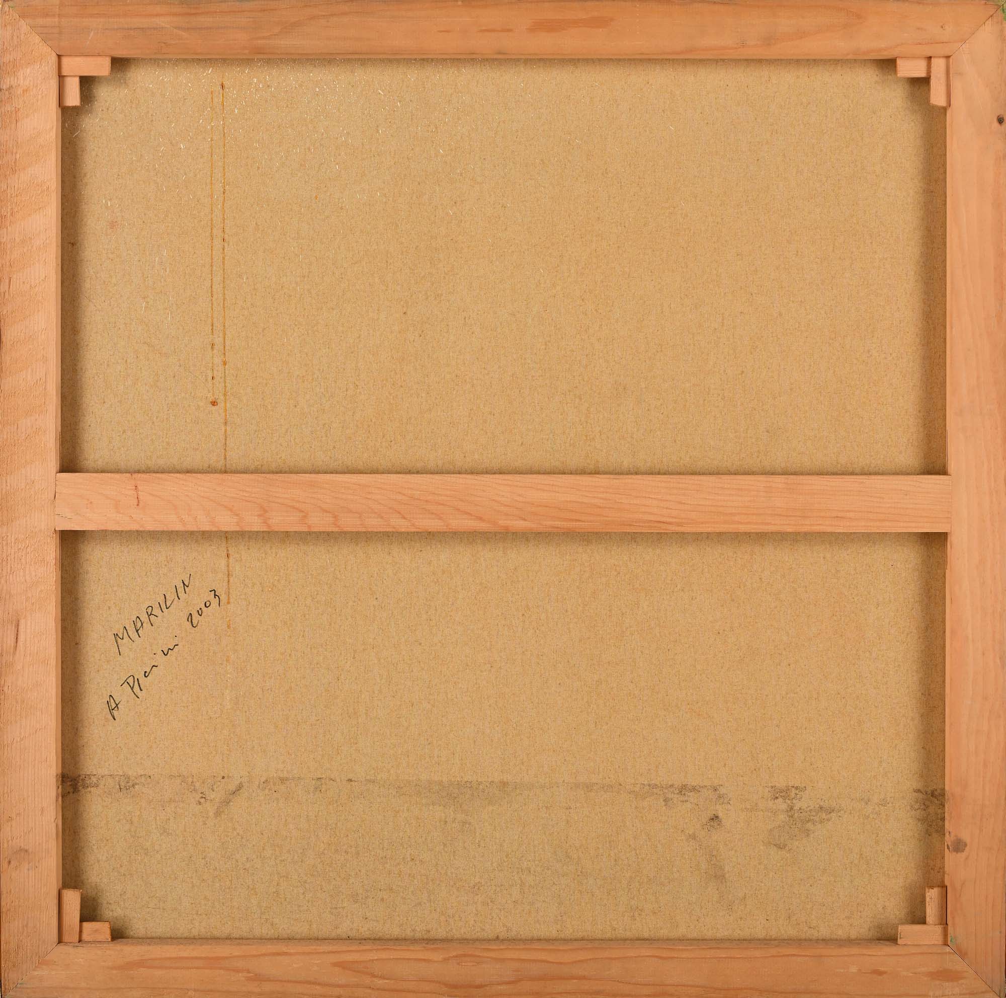 Ovidio Andrea Picini Marilyn 2003 Tempera su tela cm 100x100 Firma e data in basso a destra "A. Picini 2003". Al verso reca titolo, firma e data