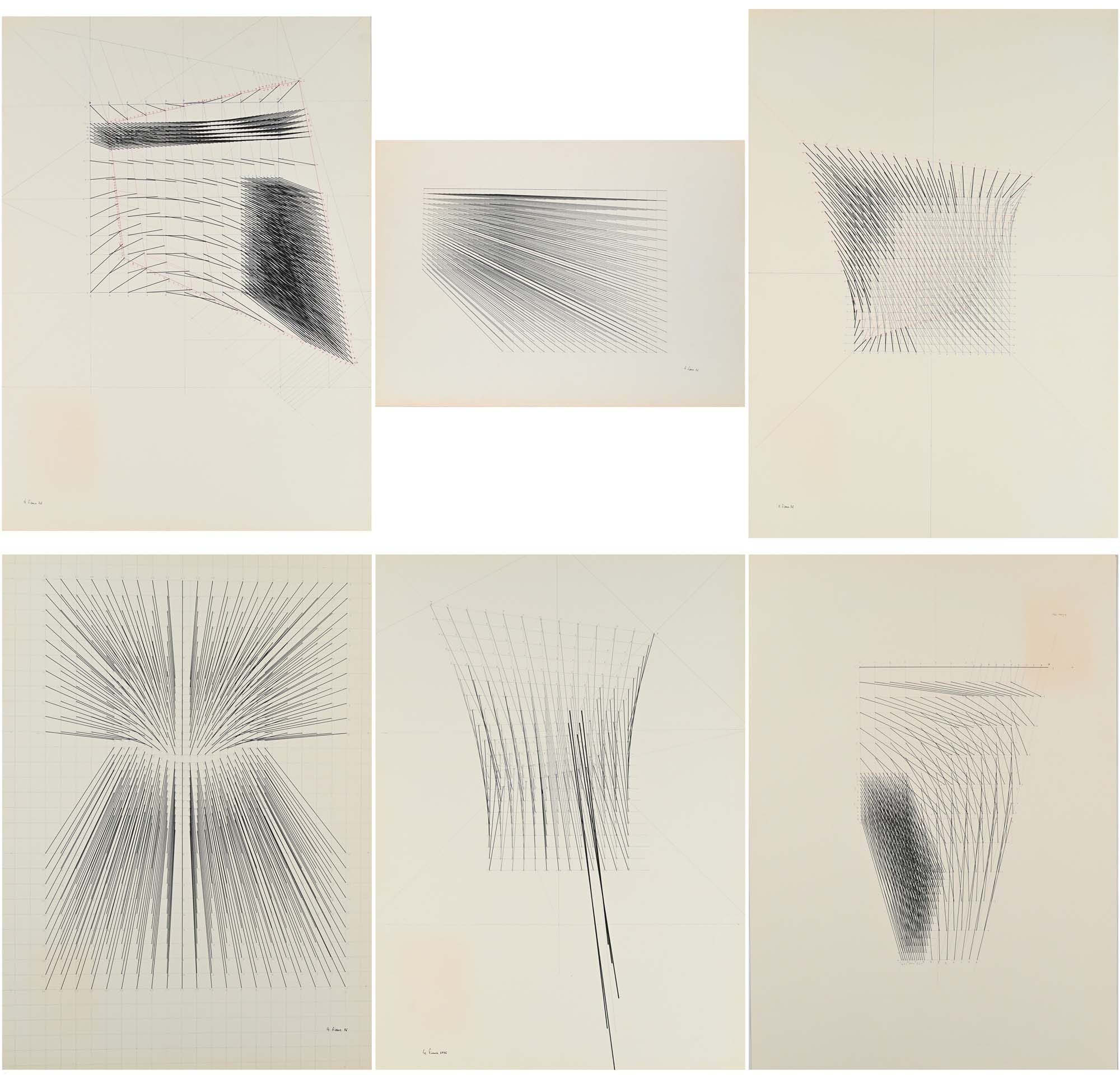 Gaetano Pinna Lotto di 6 opere Ogni opera misura cm 70x50 ed è realizzata a matita e pennarello su cartoncino. Tutte e 6 le opere sono firmate e datate