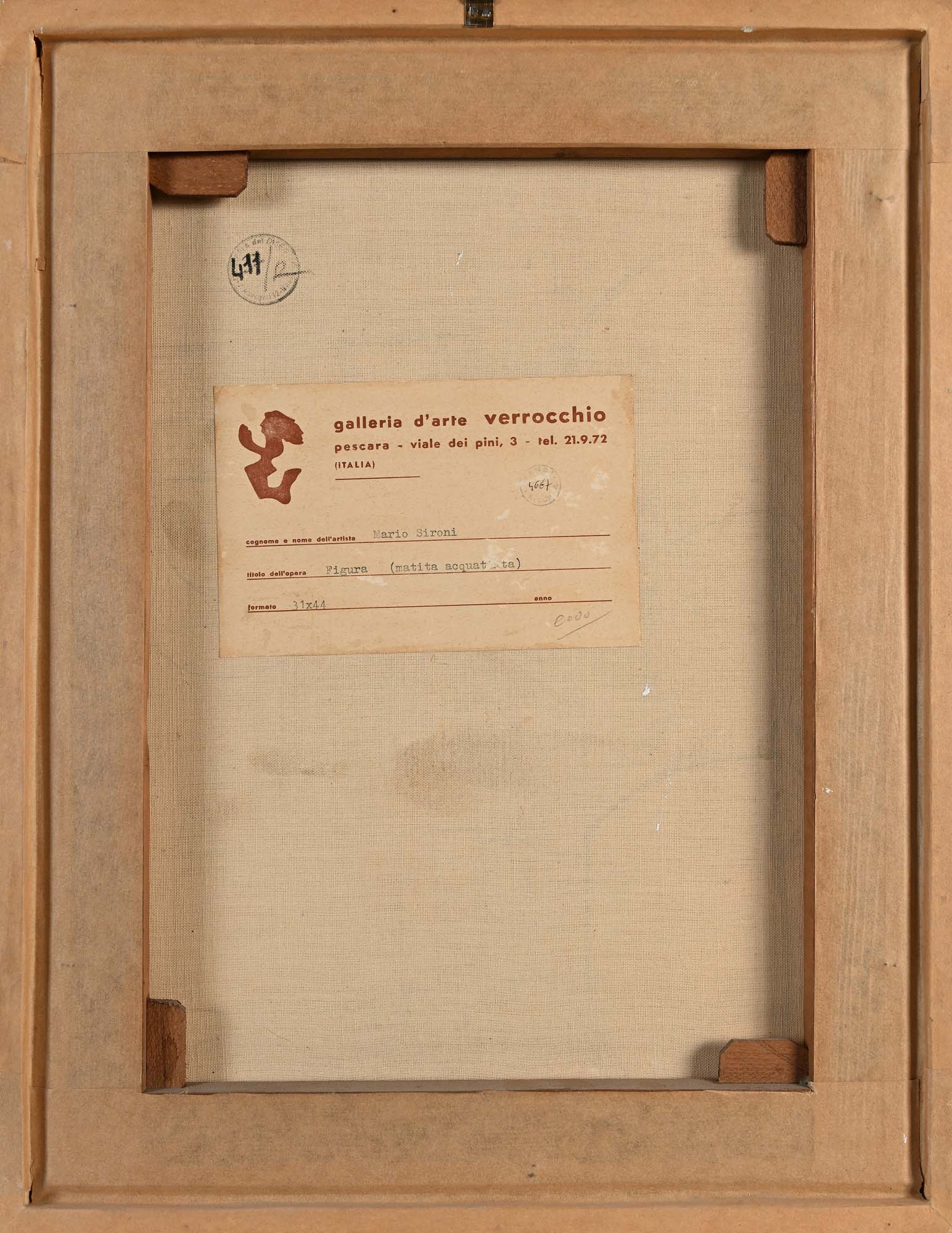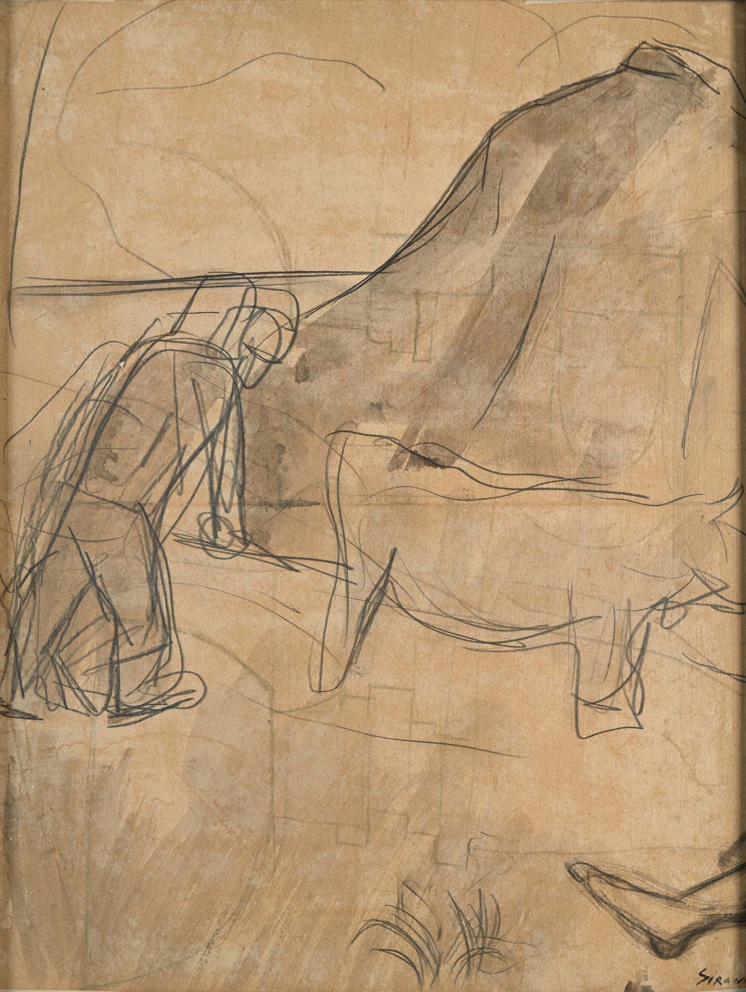 Mario Sironi Nei campi 1926 Matita e acquarello su carta applicata su tela cm 42x32 - in cornice cm 45x35 Firma in basso a destra "Sironi". Al verso reca etichetta della "Galleria Verrocchio, Pescara".