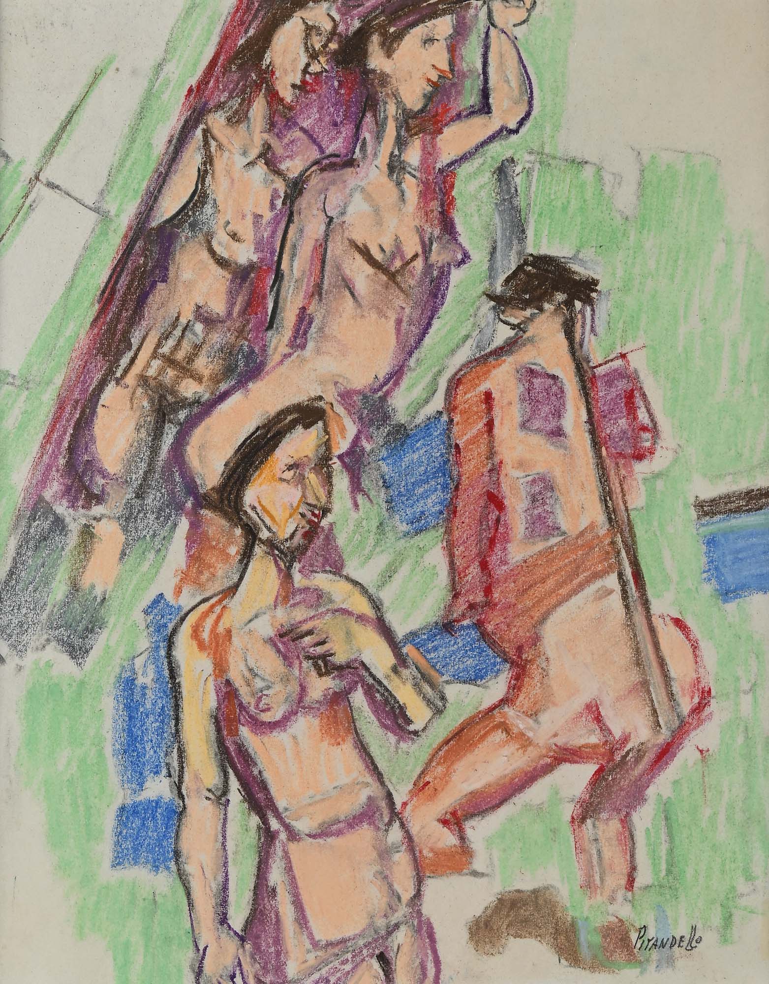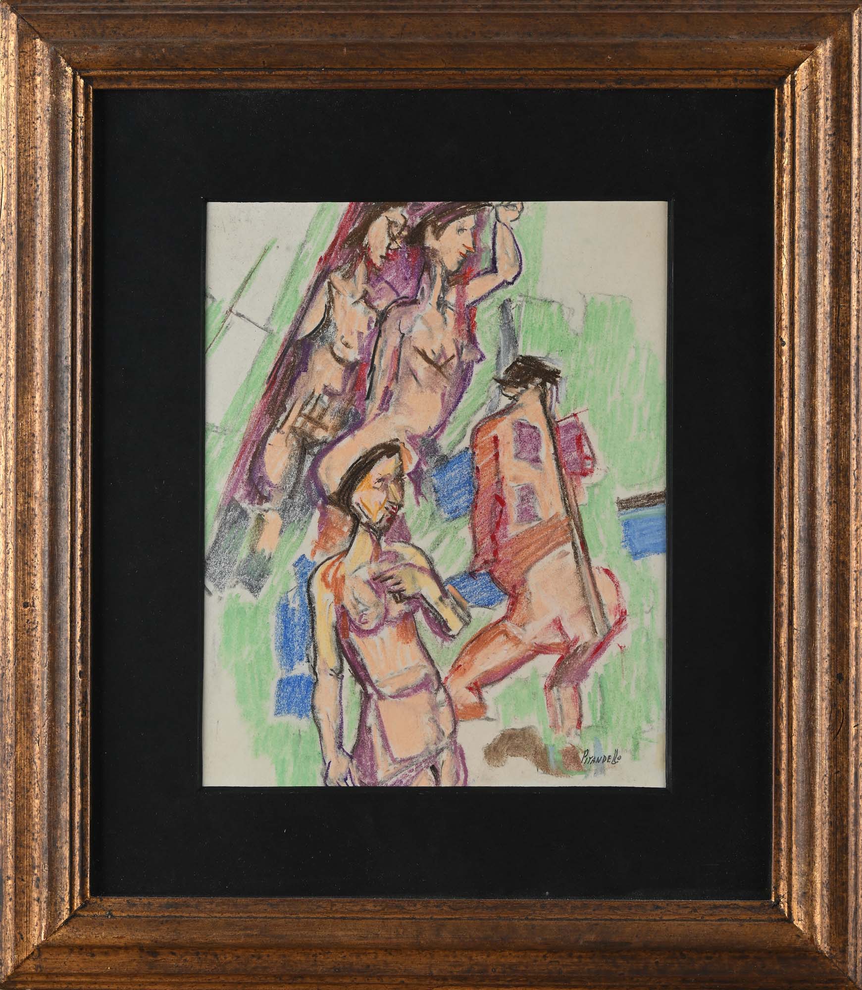Fausto Pirandello Figure Pastelli su carta cm 26x21 - in cornice cm 44x39 Firma in basso a destra "Pirandello" Certificato di autenticità e provenienza su fotografia rilasciato dalla Galleria Volos di Roma