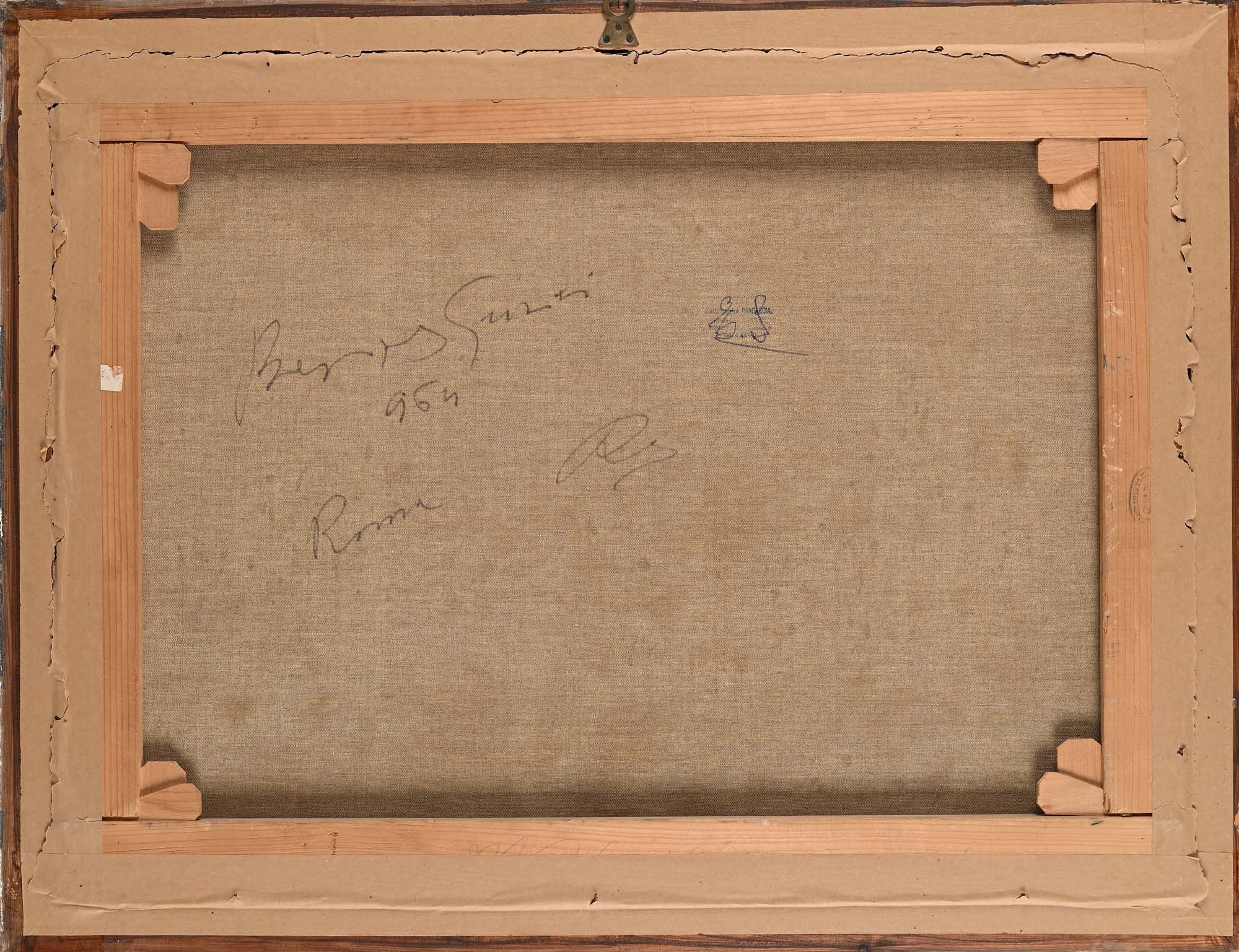 Beppe Guzzi Paesaggio di montagna con cactus in fiore 1964 Olio su tela cm 60x80 - in cornice cm 70x90 Firma e data in basso a destra "Beppe Guzzi 964". Al vero reca firma e data. Timbro galleria La Barcaccia