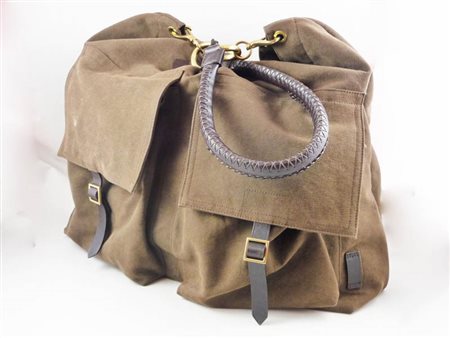 BORSONE A SPALLA IN TESSUTO - SHOULDER FABRIC BAG Gucci tracolla in pelle intrecciata, due tasche frontali con chiusure in pelle