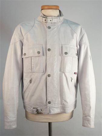 GIUBBOTTO DA UOMO IN PELLE BIANCA - MEN'S WHITE LEATHER JACKET Belstaff tasche frontali due con bottoni e le altre con cerniere, colletto alto, tg 52