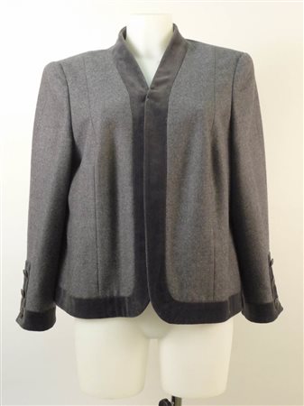 GIACCHINA IN LANA GRIGIA - GRAY WOOL JACKET bordata in vellutino grigio, bottoni in metallo sui polsini tg M circa