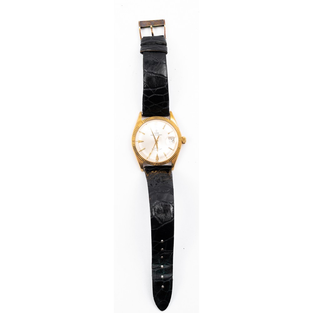 OROLOGIO da polso Tudor con cassa in oro giallo 18 KT, carica automatica, cinturino in pelle non originale.