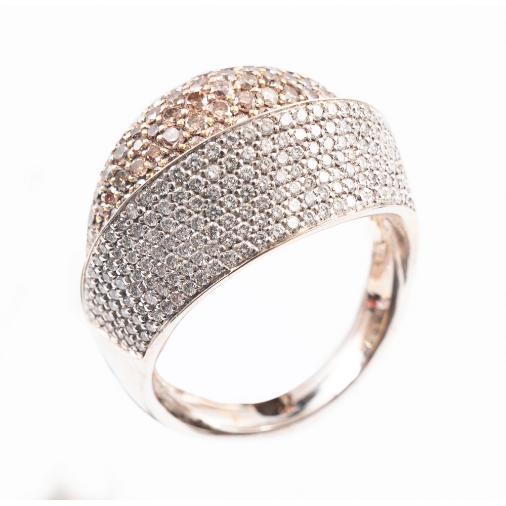 ANELLO Giorgio Visconti in oro bianco e giallo 18 KT con diamanti taglio brillante ct. 1,80 H COLOR VS, diamanti fancy taglio brillante ct. 1,40 (g. 18,20).