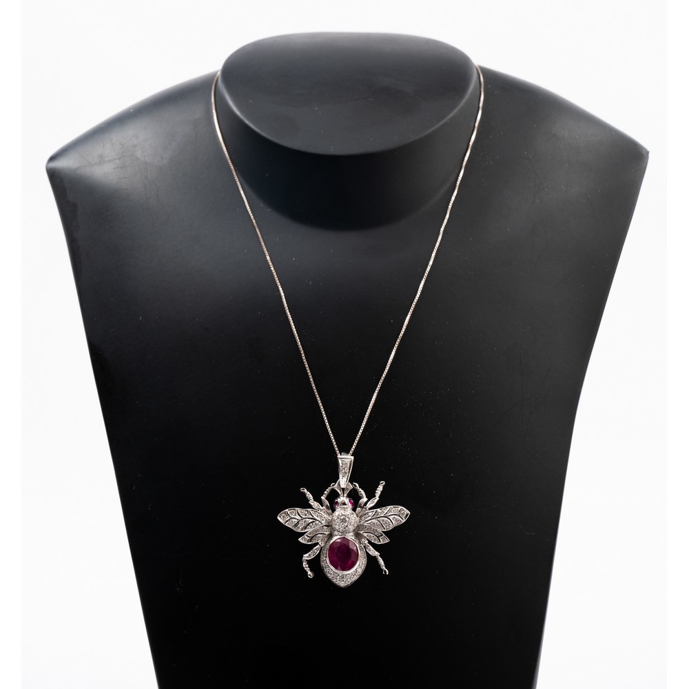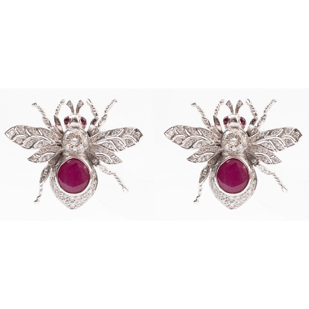 PARURE in oro bianco 18 KT con diamanti taglio brillante ct. 2,20 peso di stima I COLOR VS e rubini ct. 6,00 peso di stima (g. 24,40).
