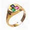 ANELLO in oro 18 KT con smeraldo ct. 0,08 peso di stima, zaffiro ct. 0,10 peso di stima e rubino ct. 0,10 peso di stima, reca scrittura "Ich Dien" (g. 9,90).