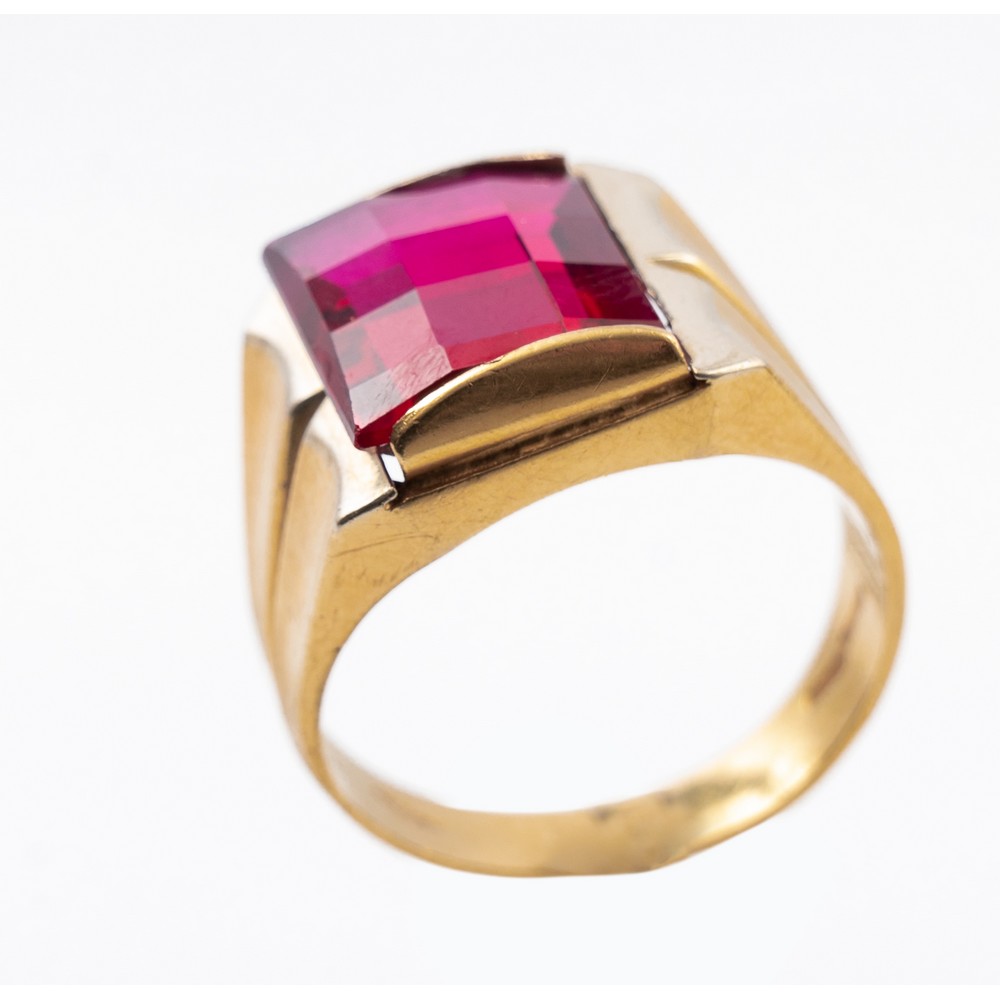 ANELLO in oro giallo 18 KT e pietra semipreziosa (g. 13,20).