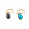 DUE ANELLI in oro giallo 18 KT con cabochon in turchese e lapis (g. 7,55).