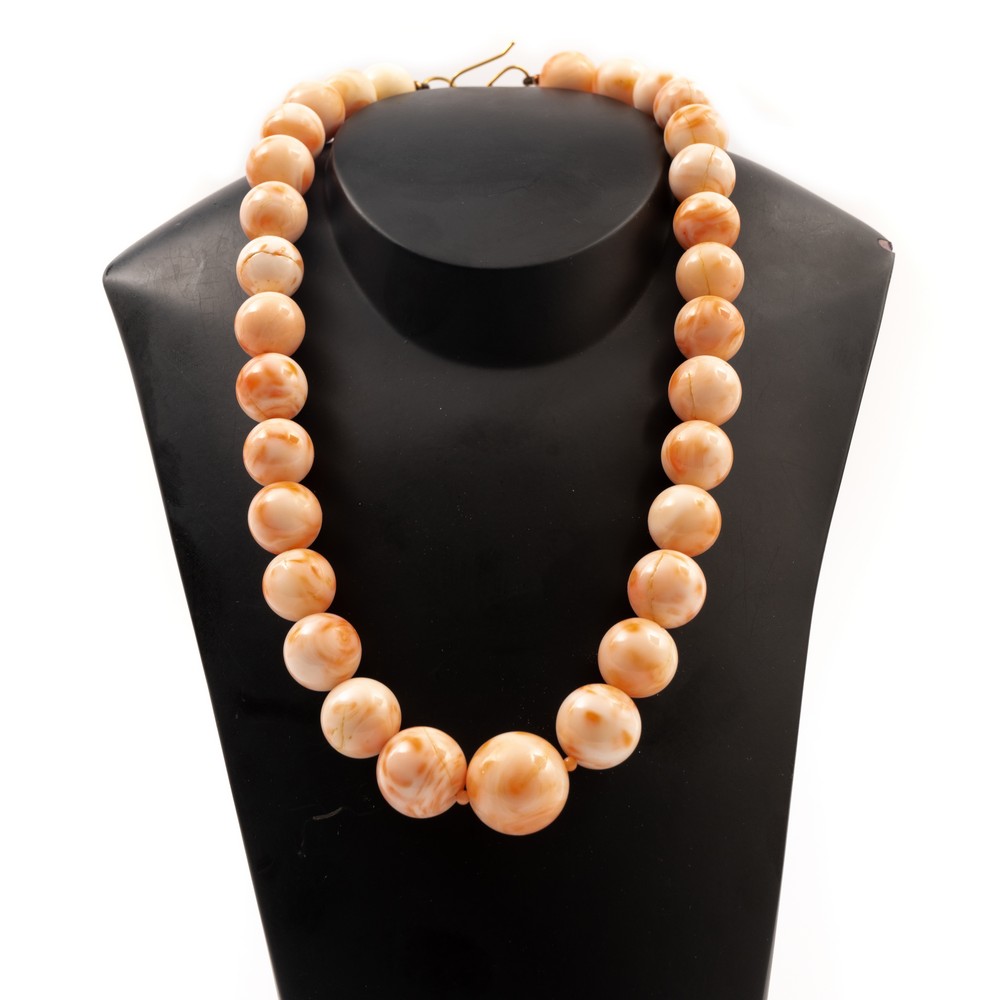 COLLANA in corallo pelle d'angelo con chiusura in oro giallo 18 KT (g. 159).