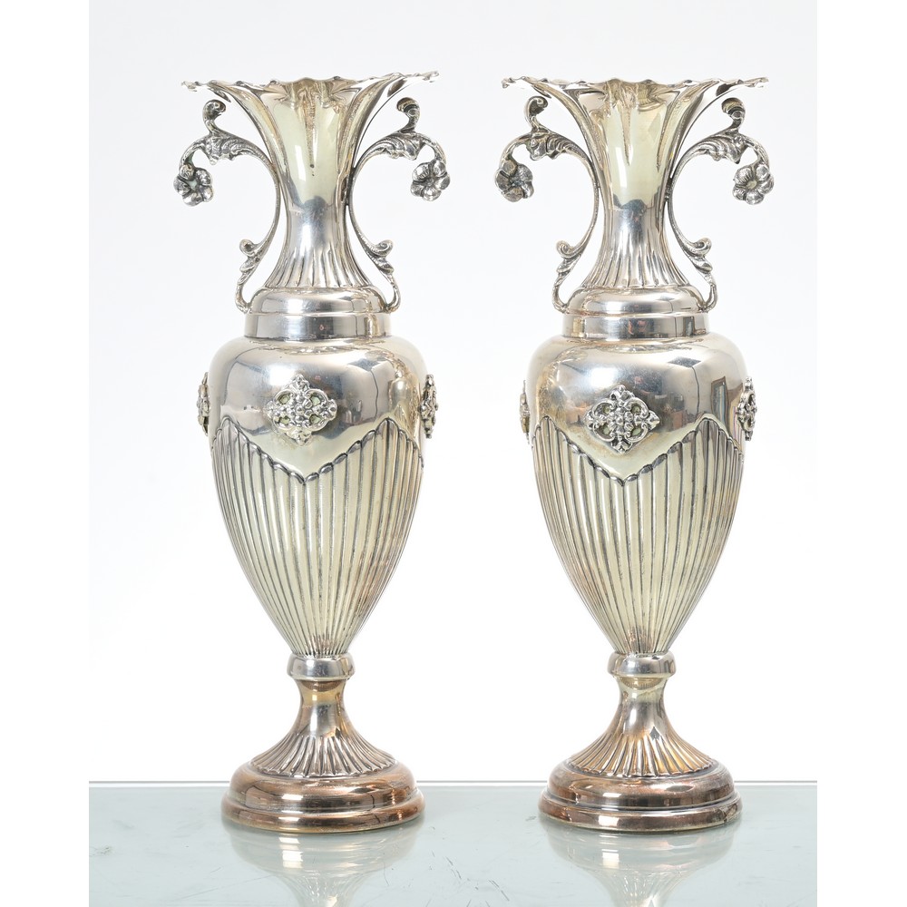 COPPIA DI VASI monofiore in argento sbalzato (g. 634).