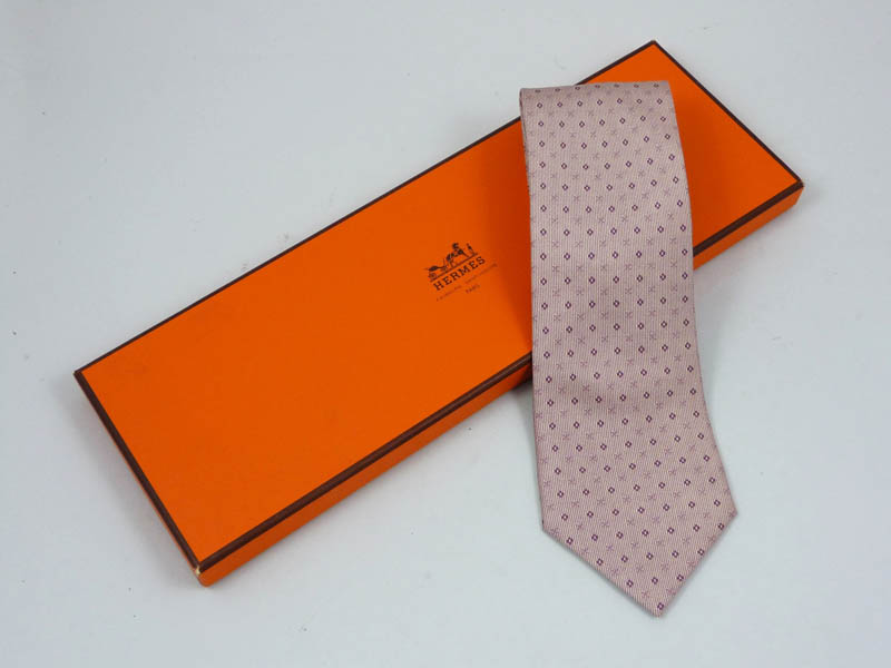 CRAVATTA IN SETA - SILK TIE Hermés realizzato a fantasia nei toni del viola su fondo rosa entro scatola originale