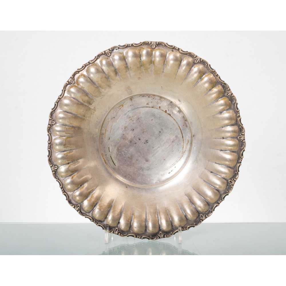 CENTROTAVOLA in argento con bordo sbalzato (un piedino mancante) (g. 368).