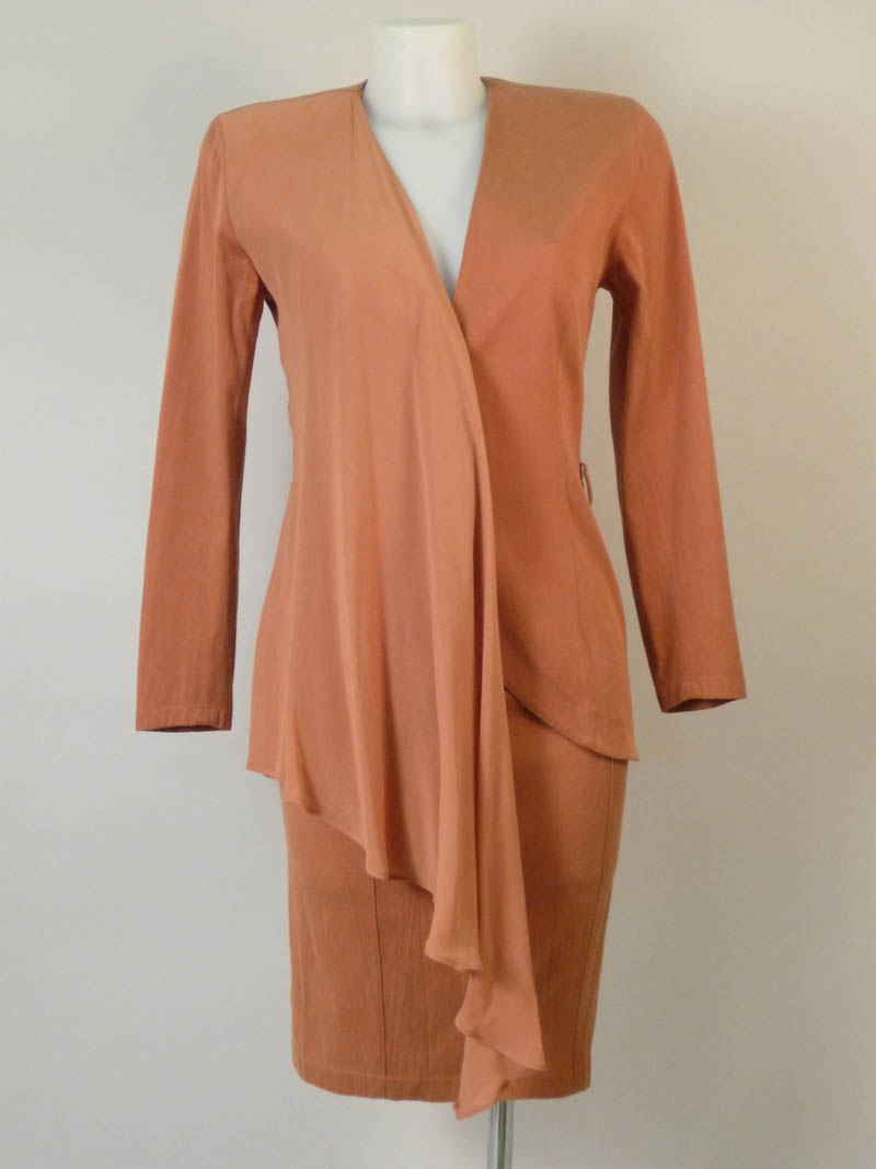 COMPLETO COLOR SALMONE IN VISCOSA - VISCOSE COMPOSÈ CRIMSON composto da camicia e da una gonna stretta, lievi difetti tg 42