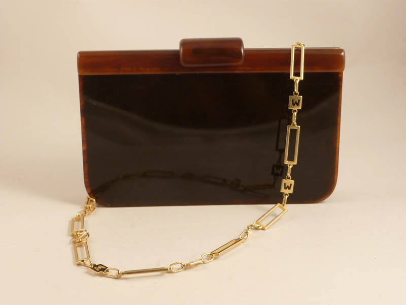 BORSETTA RIGIDA MARRONE - BROWN CLUNTCH Mangiameli Milano catenina dorata, lievi difetti