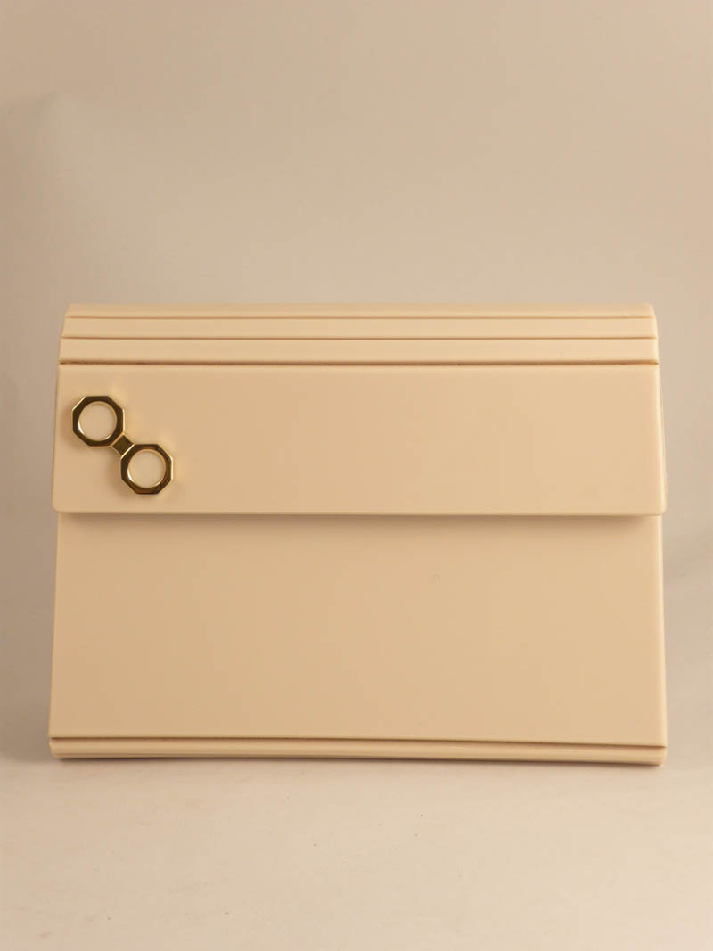 BORSETTA RIGIDA PANNA - CREAM SHOULDER BAG Ipes dettagli dorati sulla patta, tracolla in pelle, lievi difetti