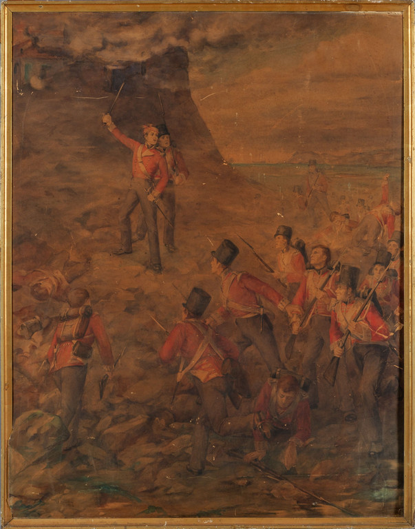 Precedente Lotto 0295 Successivo Aste Boetto - Via Mura dello Zerbino 10R, 16122 Genova ASTA DI ANTIQUARIATO E DIPINTI SEC.XIX Asta di Antiquariato e dipinti sec.XIX martedì 10 dicembre 2024 ore 15:00 (UTC +01:00) DIPINTO Giovani combattentiacquarello fine sec.XIXcm. 90x119