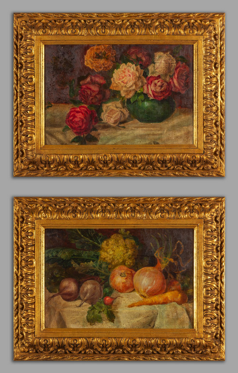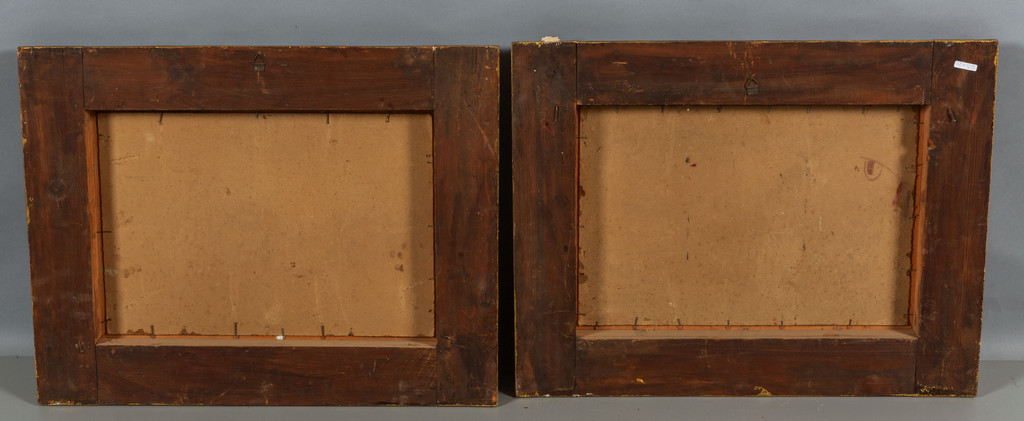 coppia di olii su cartone cornici in legno intagliato e dorato sec.XX