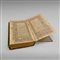 Arabic text on paper. Double frontispiece (sarlaw) in typical Indian style with arabesques on a blue background within repeated gilt cusped arches. Writing box 198 X 103 mm bordered by triple red and blue fillets and containing 11 lines of text penned in Naskh script in black ink and red diacritics. Verse (ayat) separators in the form of golden rosettes, circular section separators with pendants and Sura titles in red ink. The opening of some juz (parts of the Qur'an) decorated with floral illumination in the margins and gilded spacing. Notes in margins in red.Red leather-covered cardboard flap binding.