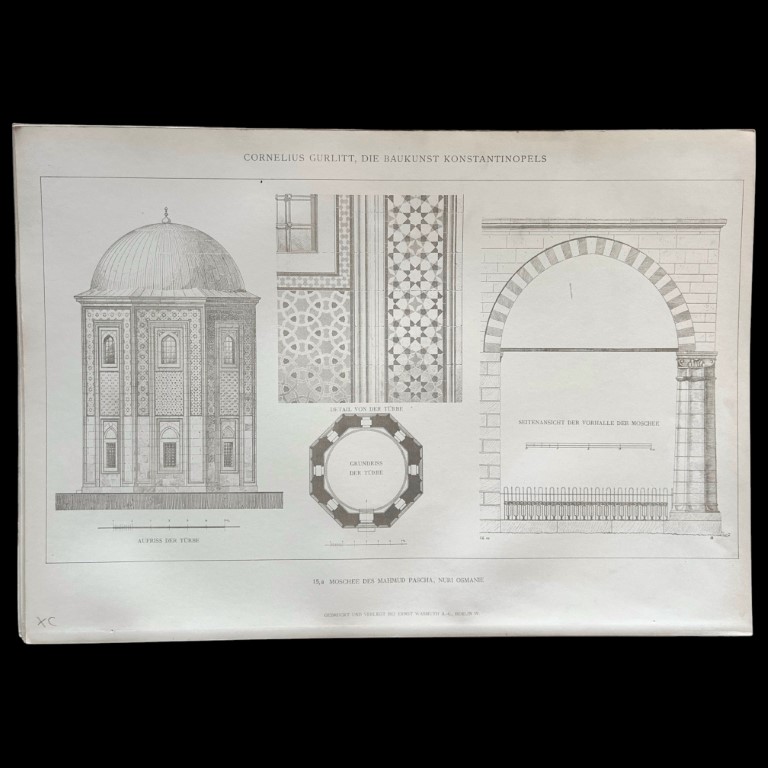 Collection of ca. 100 sheets with photographic plates and architectural plans of the main monuments of Constantinople.