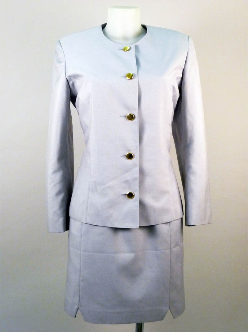 COMPOSÈ IN LANA E SETA AZZURRO - SILK AND WOOL LIGHT BLUE COMPOSÈ Dance By Nicola Parisi una giacca con bottoni dorati ed un abito lungo a tubino a linea dritta tg M circa