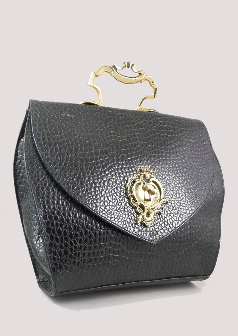 BORSA A MANO IN PELLE NERA - BLACK LEATHER HAND BAG dettagli, manico e chiusura in metallo dorato