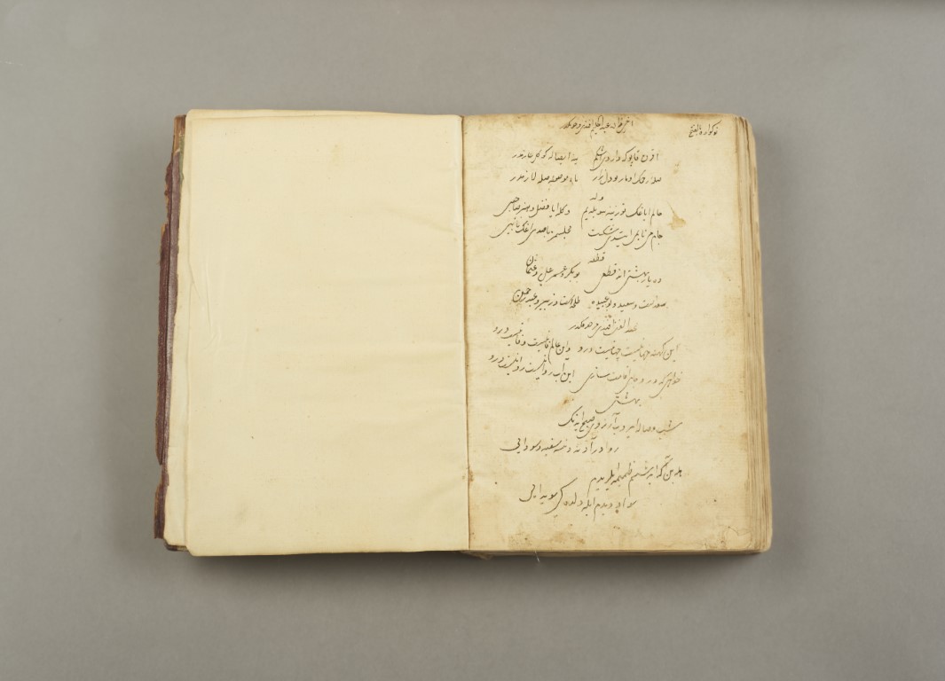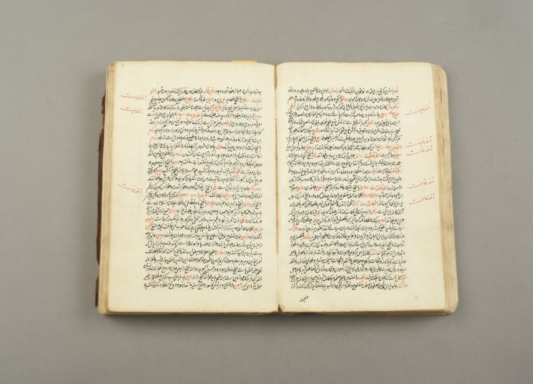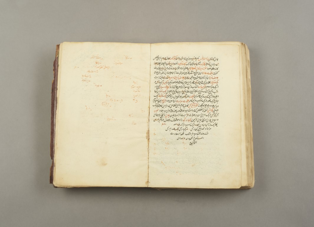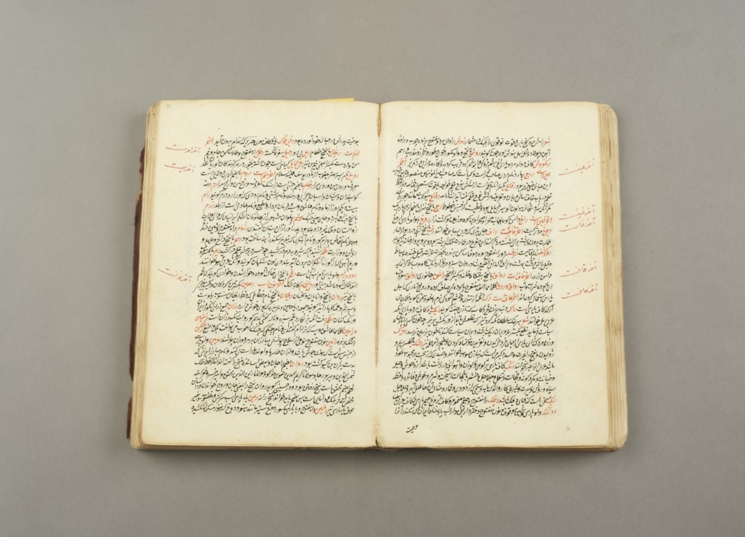 Composto da 174 Consisting of 174 papers (25 of which not contemporary), Persian text in nastaliq script in black and red ink on a single column of 25 lines; first pages on three columns.Sheet dimensions 205 x 130 mm. Writing box 170 x 90 mm.Contemporary leather binding with gold decoration, flap missing.carte (25 delle quali non coeve), testo in persiano in calligrafia nastaliq in inchiostro nero e rosso su singola colonna di 25 righe; le prime pagine su tre colonne.