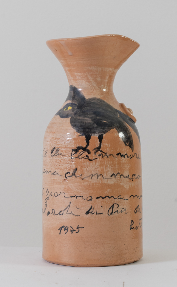 Pietro Ghizzardi (Viadana 1906 - Boretto 1986). Brocca, 1975. Terracotta smaltata. Esemplare 33/36. Sul corpo del vaso animali dipinti e scritte. Firmata e datata Pietro Ghizzardi 1975.