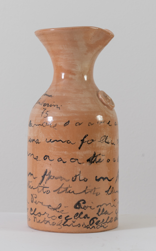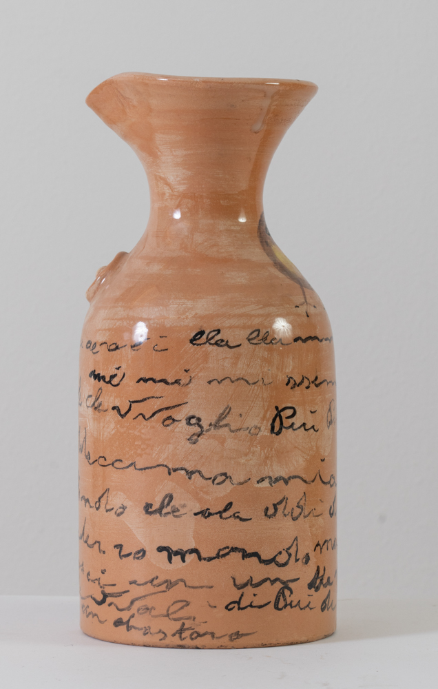 Pietro Ghizzardi (Viadana 1906 - Boretto 1986). Brocca, 1975. Terracotta smaltata. Esemplare 22/36. Sul corpo del vaso animali dipinti e scritte. Firmata e datata Pietro Ghizzardi 1975.