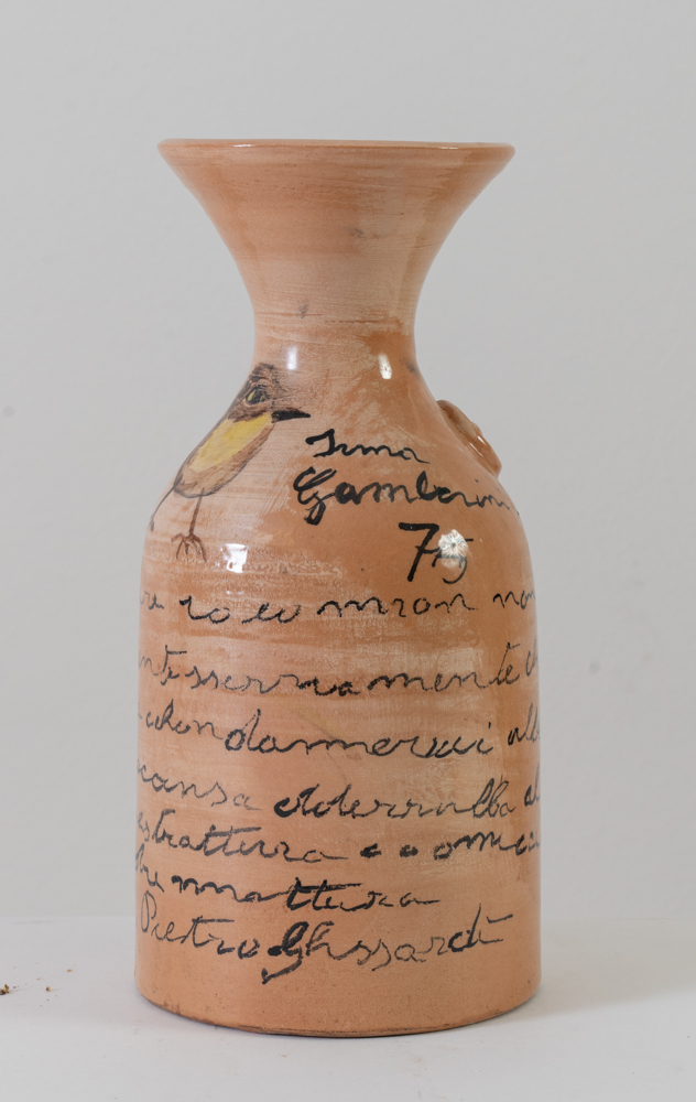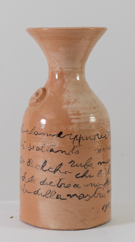 Pietro Ghizzardi (Viadana 1906 - Boretto 1986). Brocca, 1975. Terracotta smaltata. Esemplare 34/36. Sul corpo del vaso animali dipinti e scritte. Firmata e datata Pietro Ghizzardi 1975.