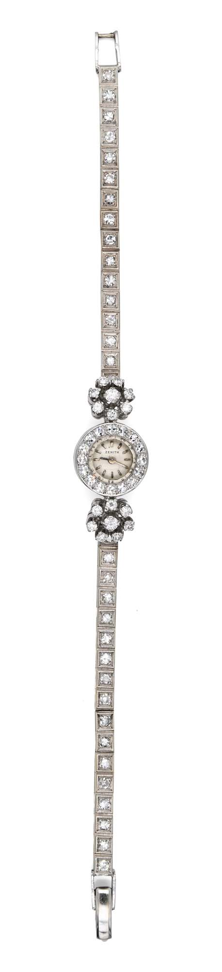 Zenith - orologio polso donna in oro e brillanti Oro bianco 750/000. Diamanti in taglio rotondo ct. 1,30ca. Peso complessivo gr.16,60. Lunghezza cm 17