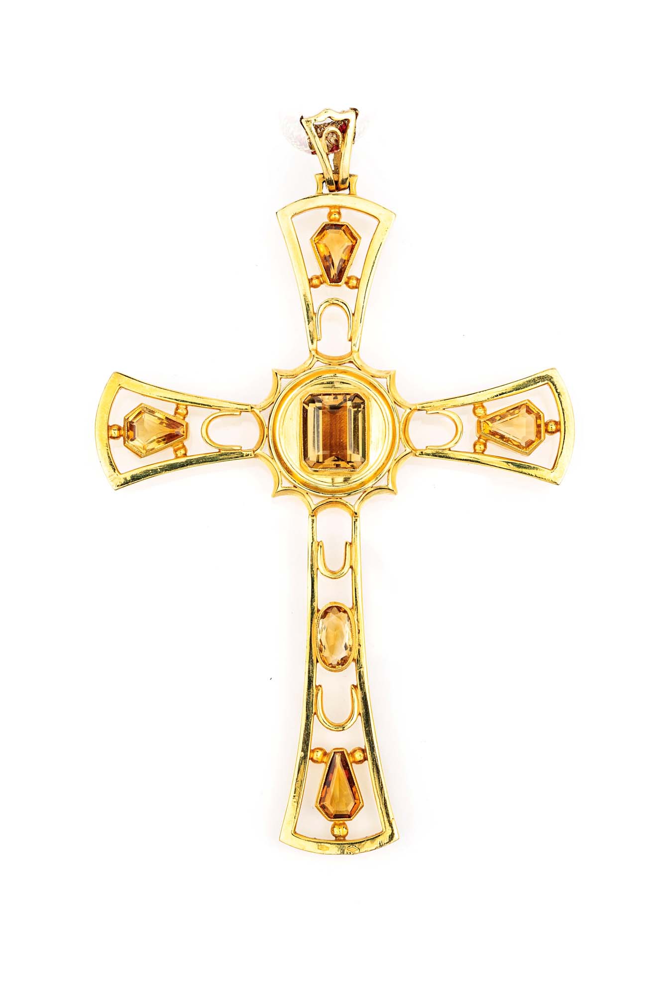 Chiaravalli, pettorale in oro e topazi Oro giallo 750/000. Topazi naturali in taglio ovale, a gradini, fantasia ct 13 ca. Peso complessivo gr, 72,10 cm 14 x 9