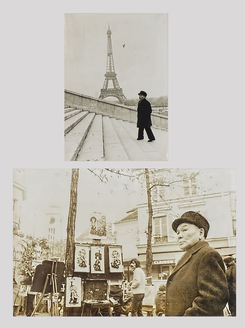 ROLAND NEVEU Akira Kurosawa a Paris 1976 due stampe alla gelatina ai sali d'argento - two gelatin silver prints una con ingiallimento dell'immagine, una con piccole macchie - yellowing on one, the other with few little spots cm 20x29,7, 7.88x11.7 inches Al verso timbrate - stamped on reverse Corredate di comunicato stampa dell'Agenzia Gamma per la presentazione del film ''Derzou Ouzala'' - With press release by Agency Gamma for the presentation of the movie ''Derzou Ouzala''
