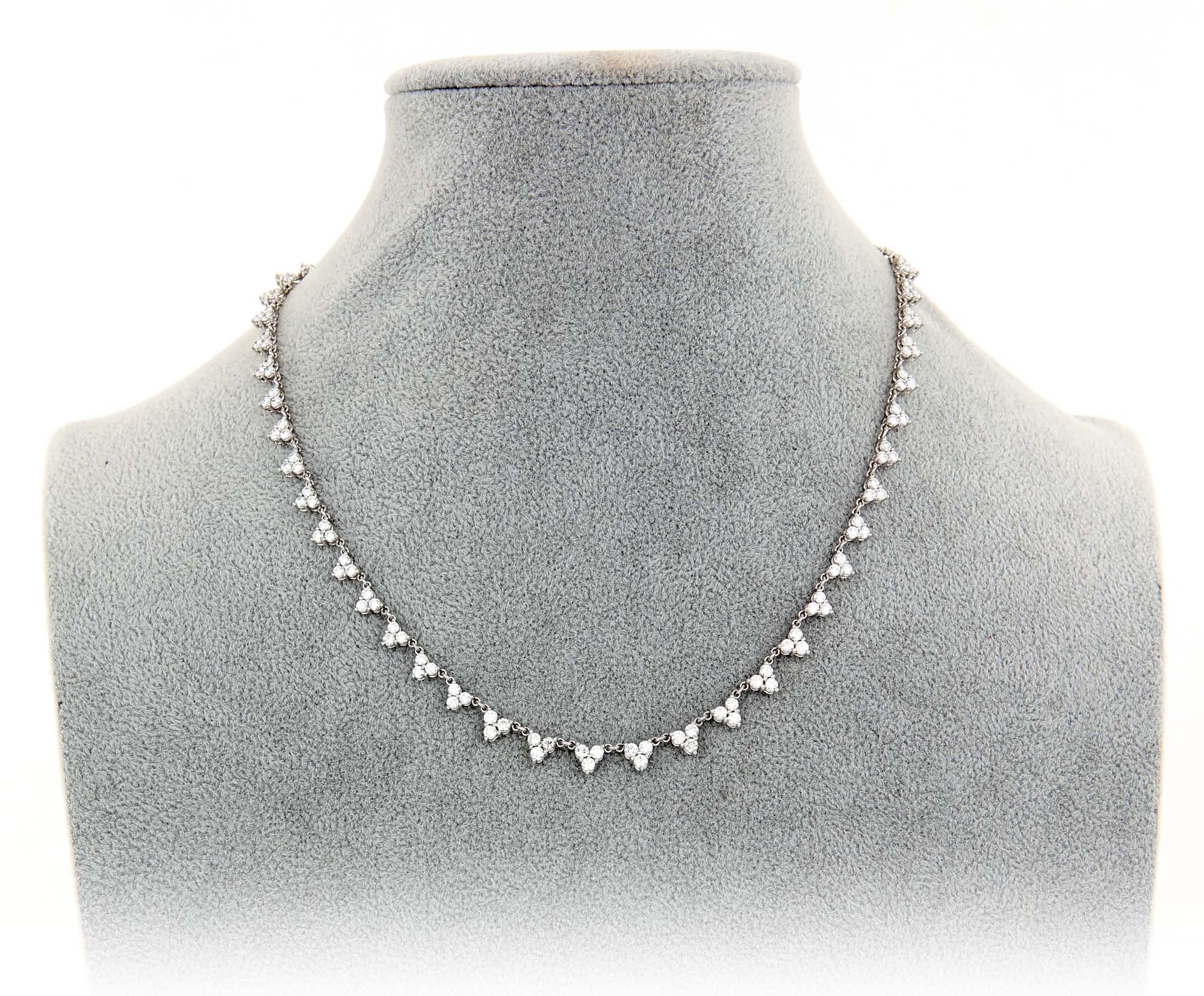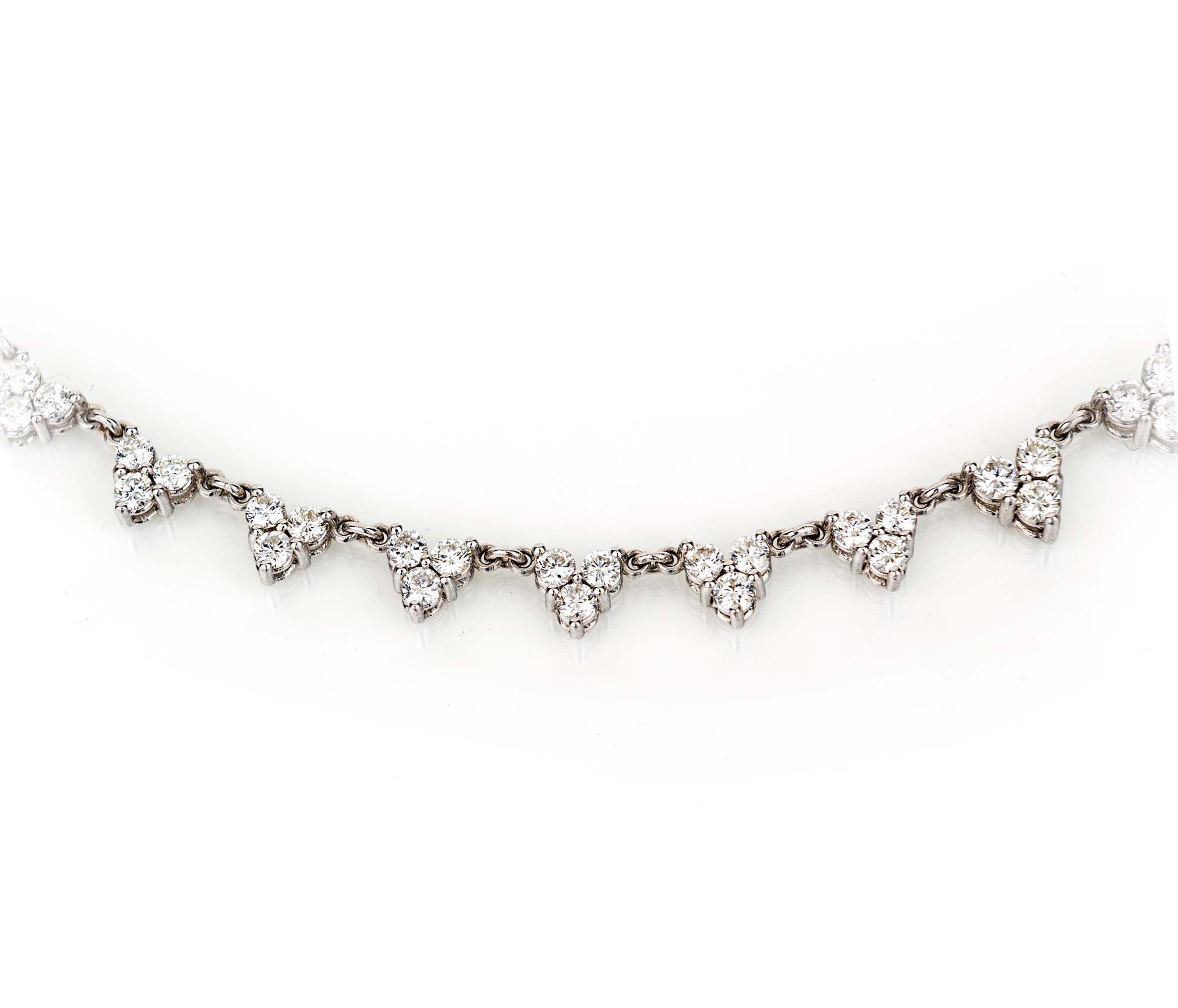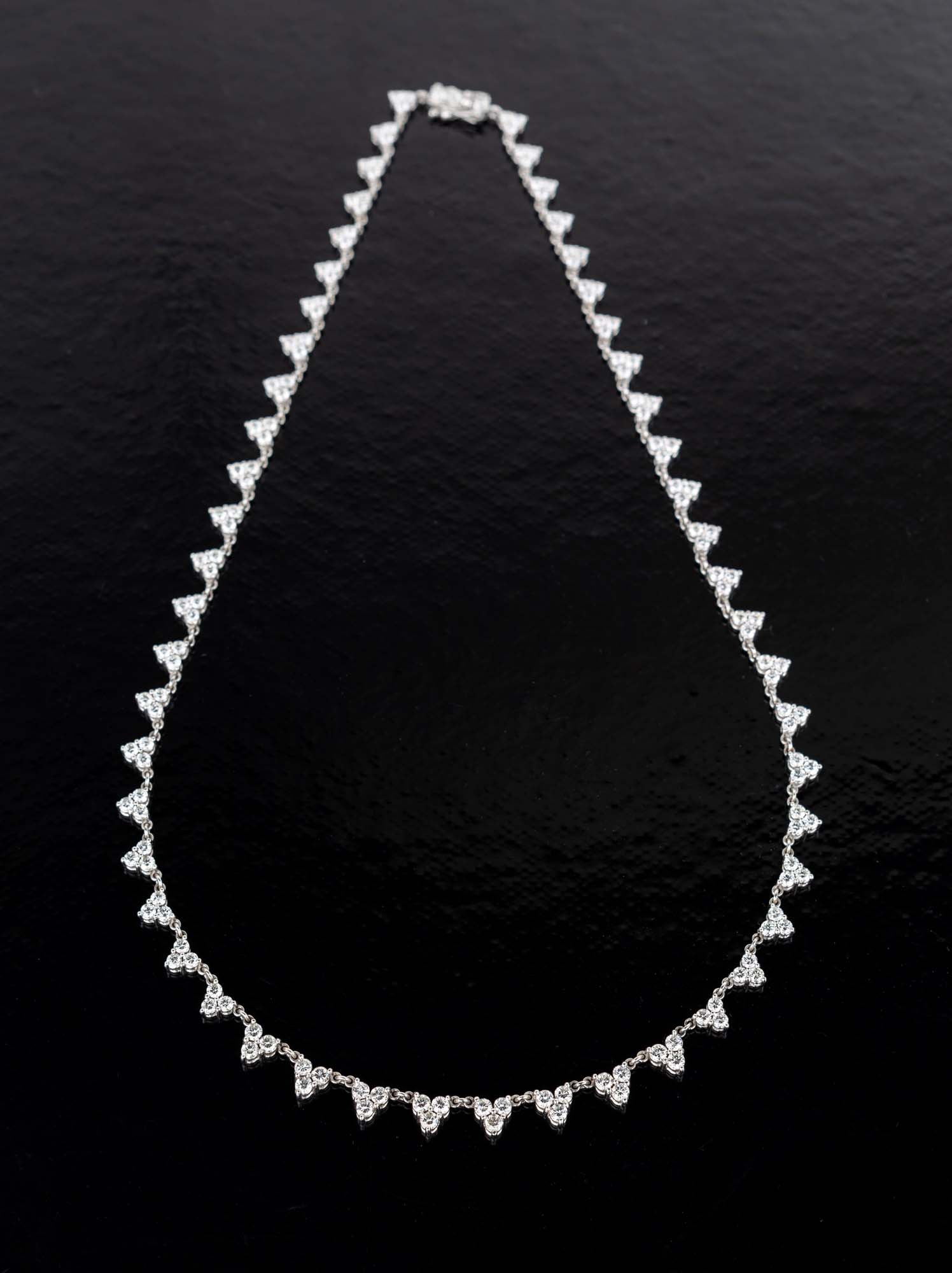 Girocollo in oro e brillanti Oro bianco 750/000. Diamanti in taglio rotondo brillanti ct. 7,80. F- VS. Peso complessivo gr. 17,80. Corredato di certificazione gemmologica. Lunghezza cm 44