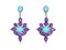 Coppia di orecchini pendenti turchesi, brillanti e ametiste. Oro giallo...