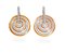 Coppia di orecchini pendente a cerchi concentrici in oro e brillanti Oro bianco e rosa 750/000. Diamanti in taglio rotondo brillante ct. 2,20 ca., prob F-G, VVS-VS. Peso complessivo gr. 18,60 Lunghezza cm 4,5, diametro del cerchi cm 3
