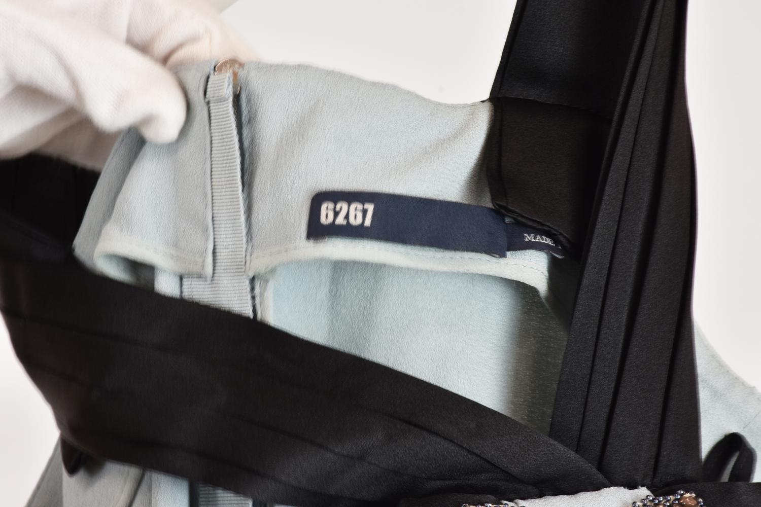 6267 DRESS DESCRIPTION: Sky blue dress with straps and black silk trim at the...