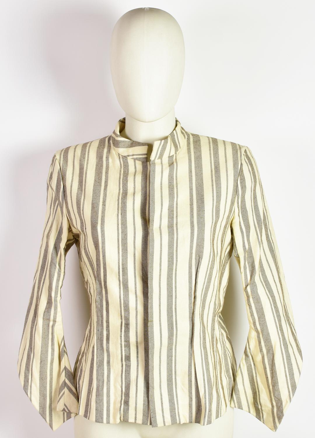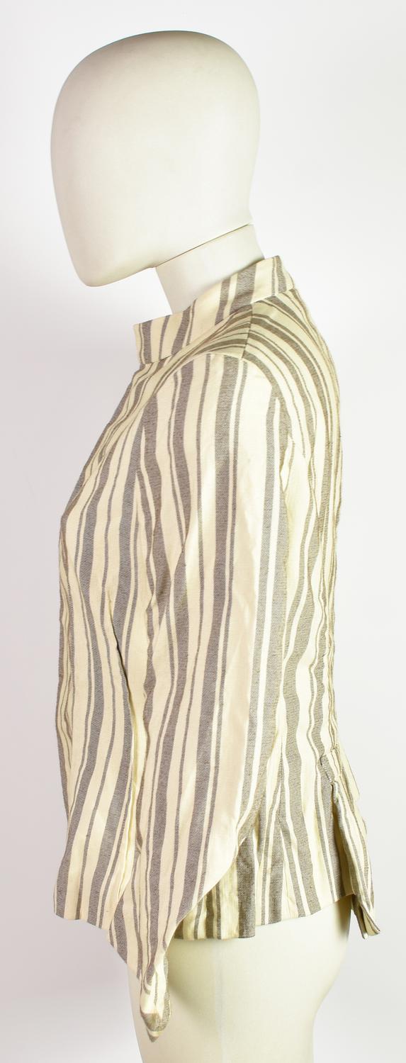 Giacca corta in cotone. Collo alla coreana, bottoni a pressione, sfoderata. Primi anni 2000, designer Consuelo Castiglioni. 100% cotone. Taglia 44 IT. Prodotto in Italia. Qualche macchia. Ben conservata.